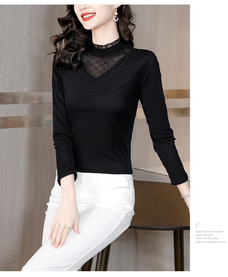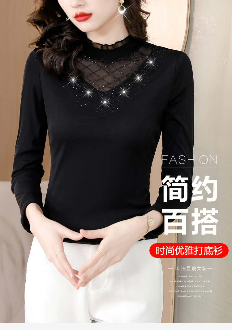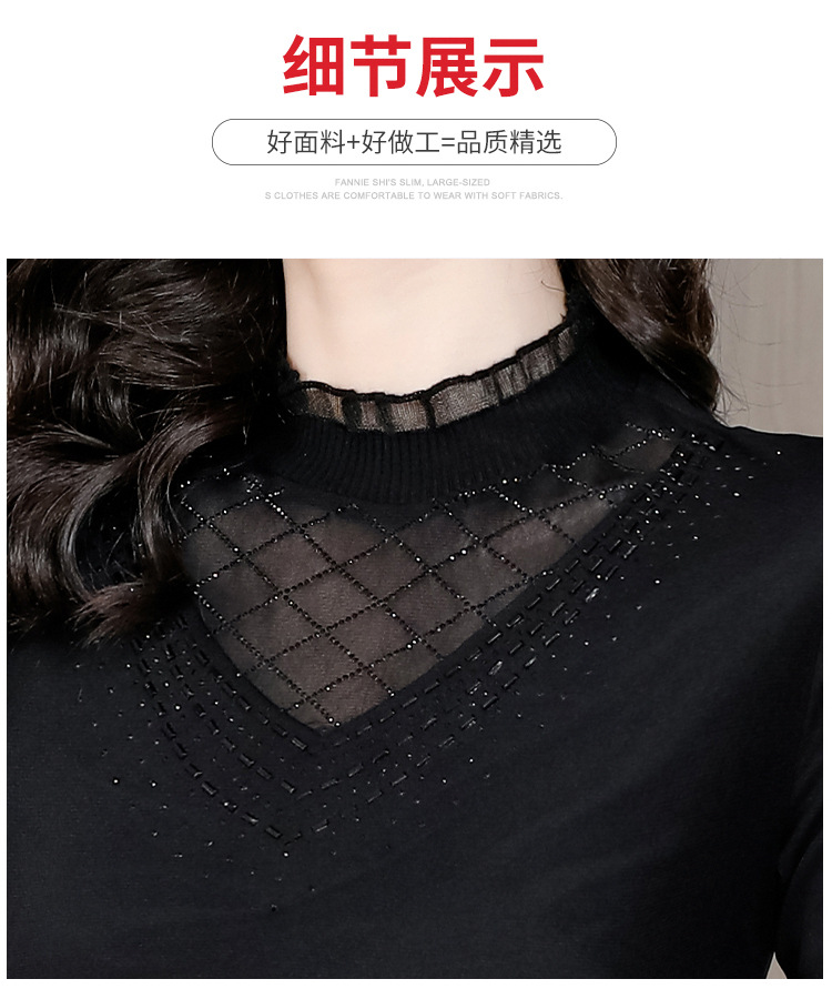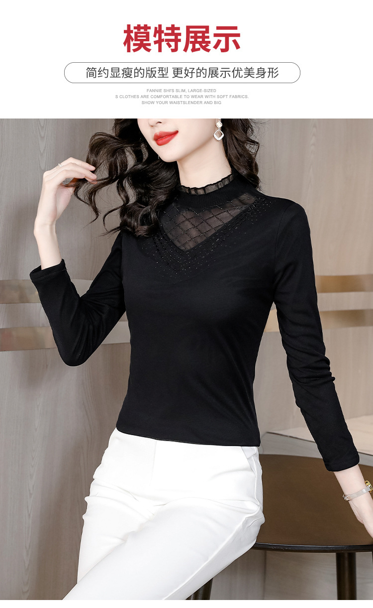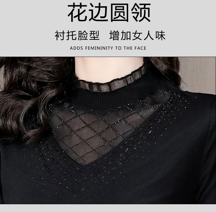 雀说 洋气蕾丝黑色打底衫女春秋网纱T恤内搭上衣4ZF-012915