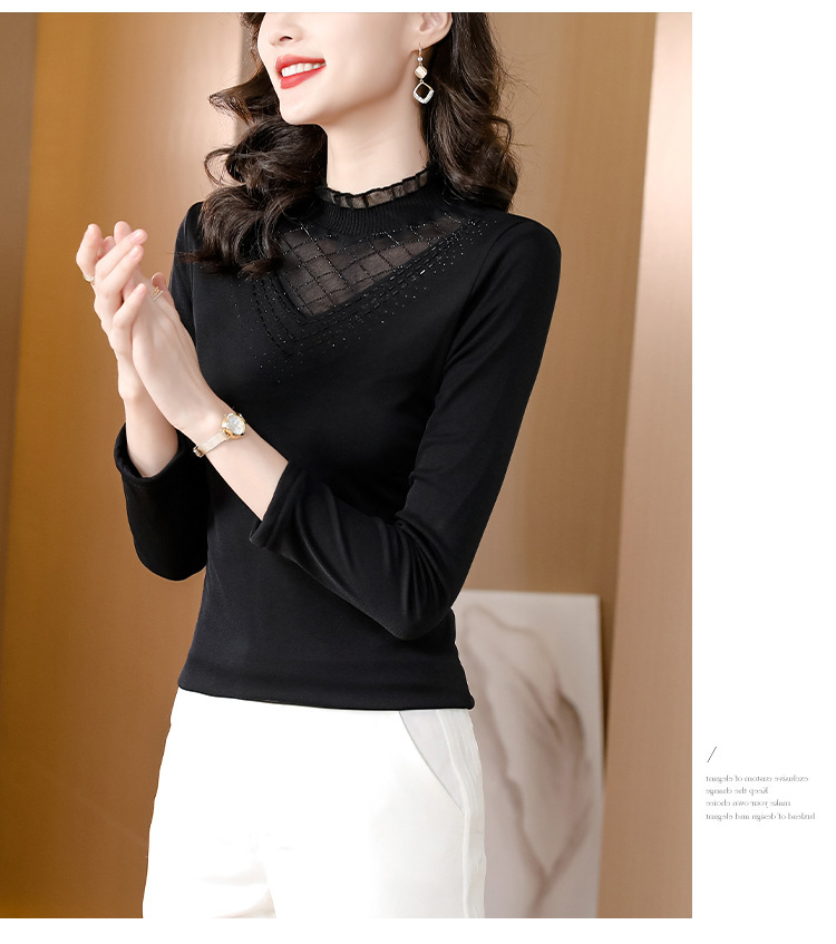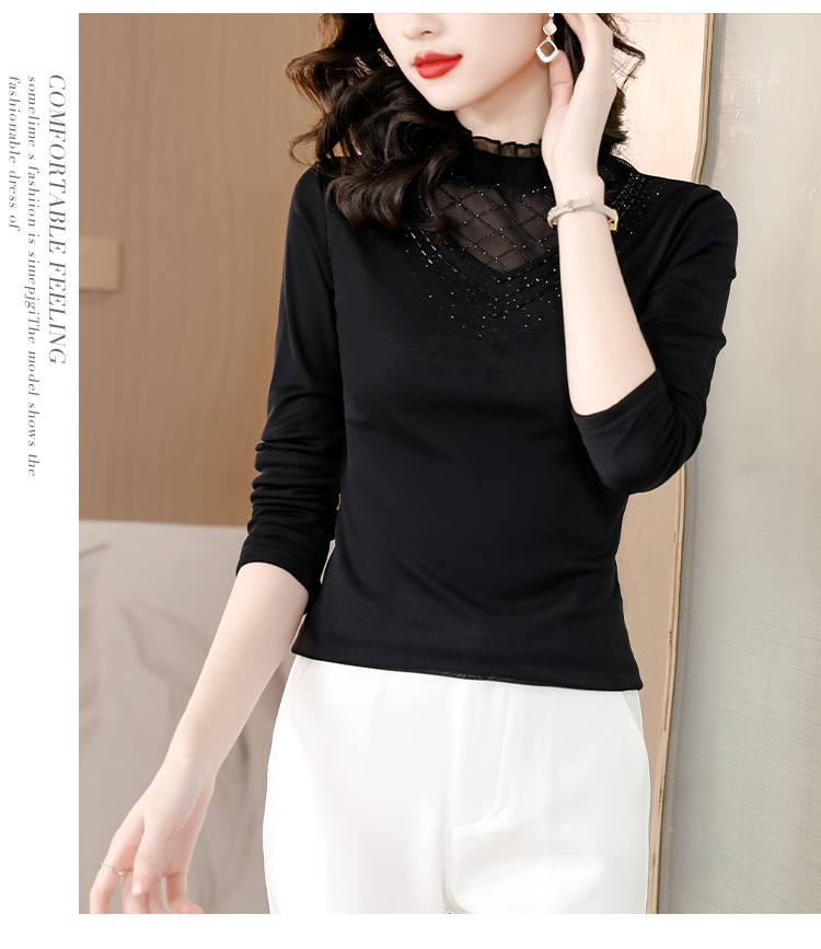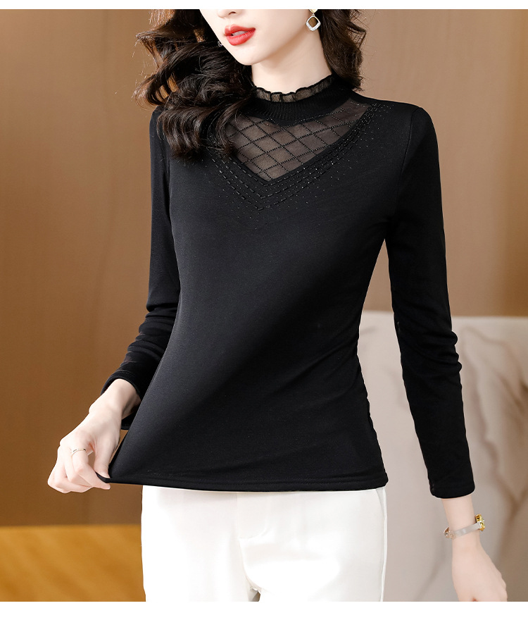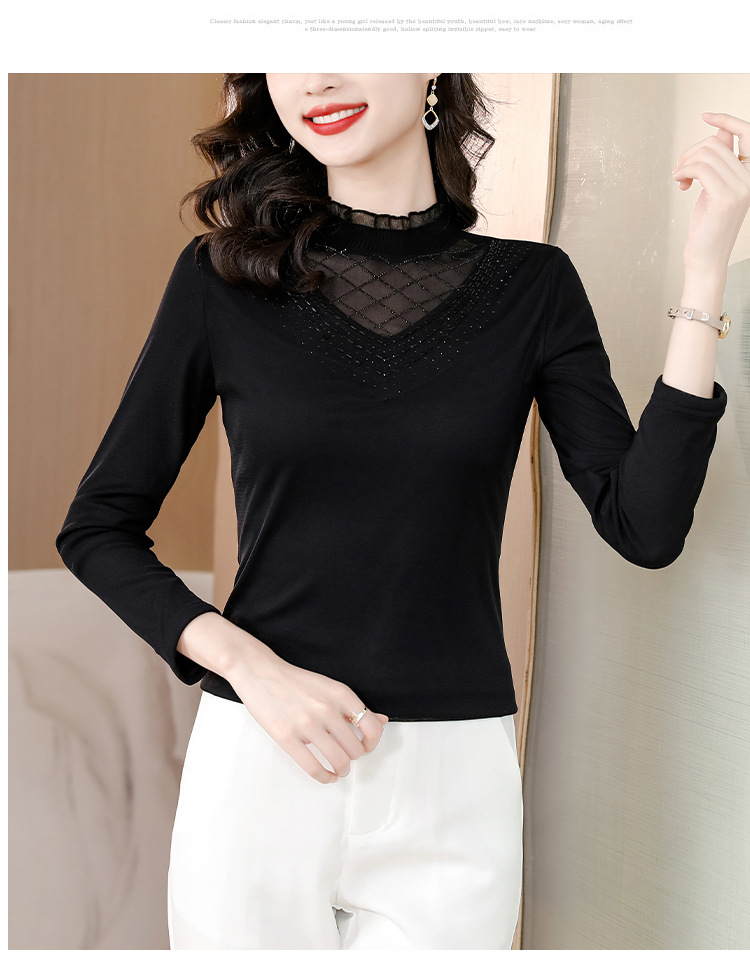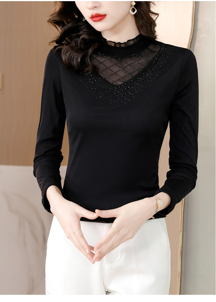 雀说 洋气蕾丝黑色打底衫女春秋网纱T恤内搭上衣4ZF-012915