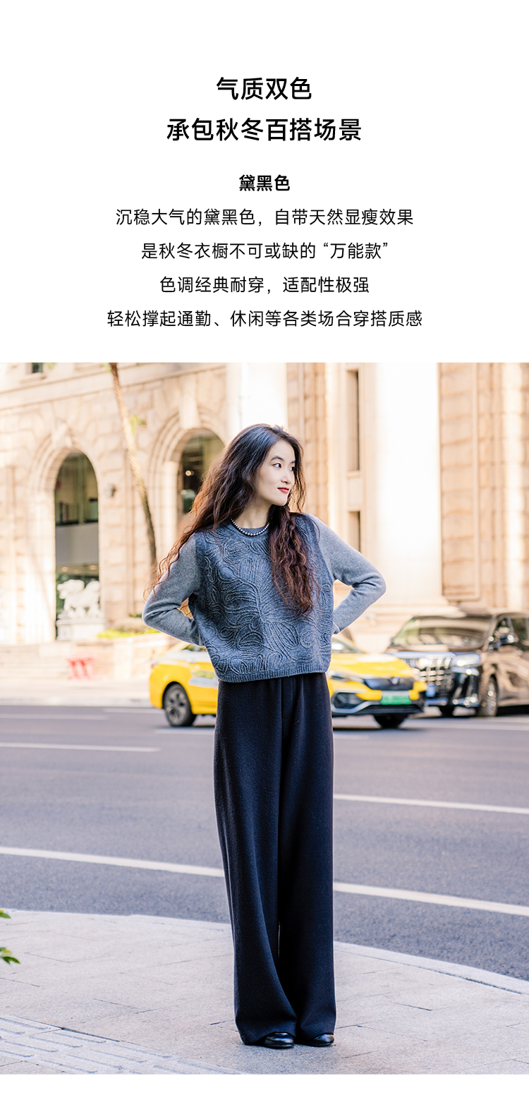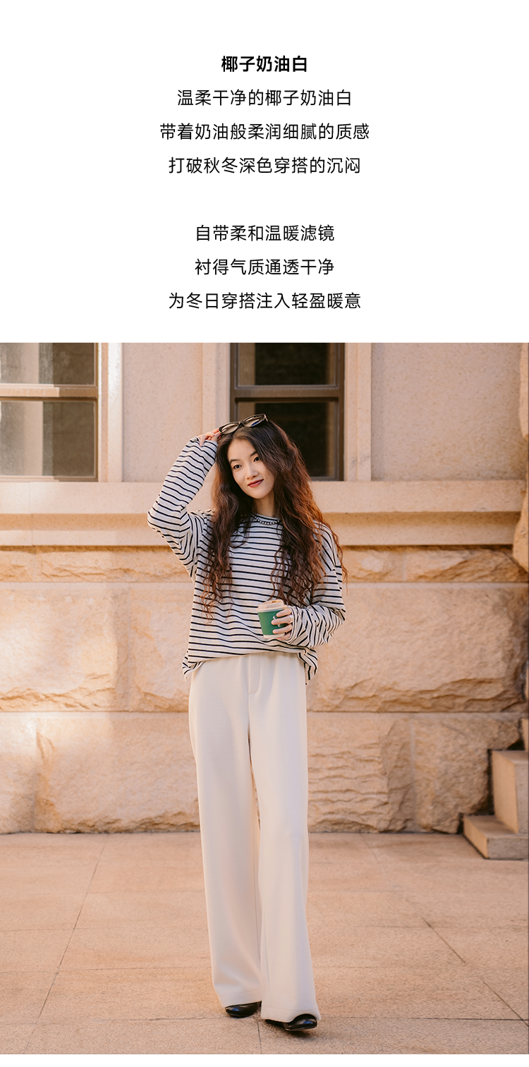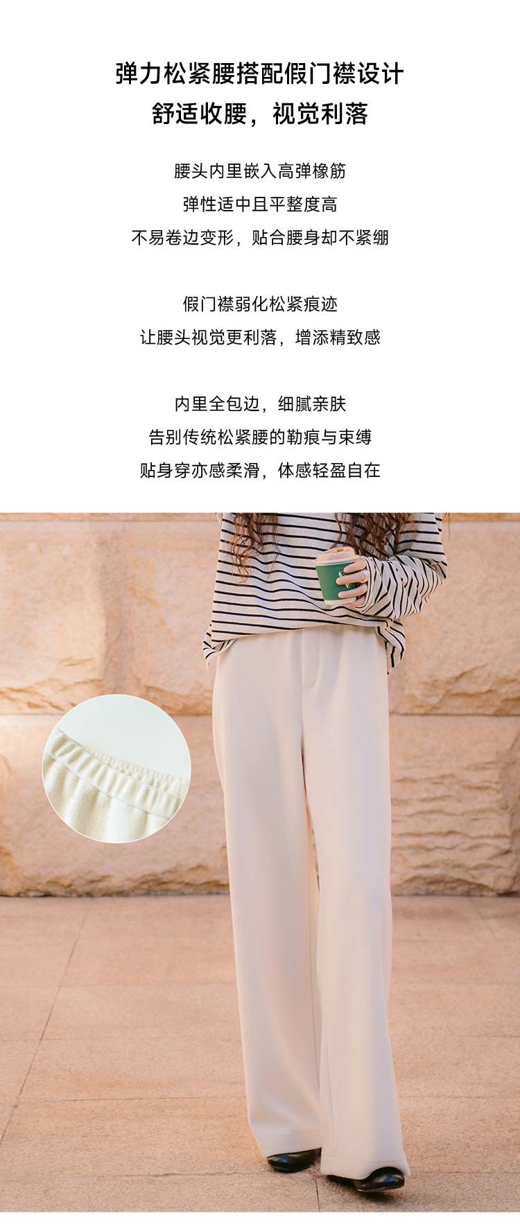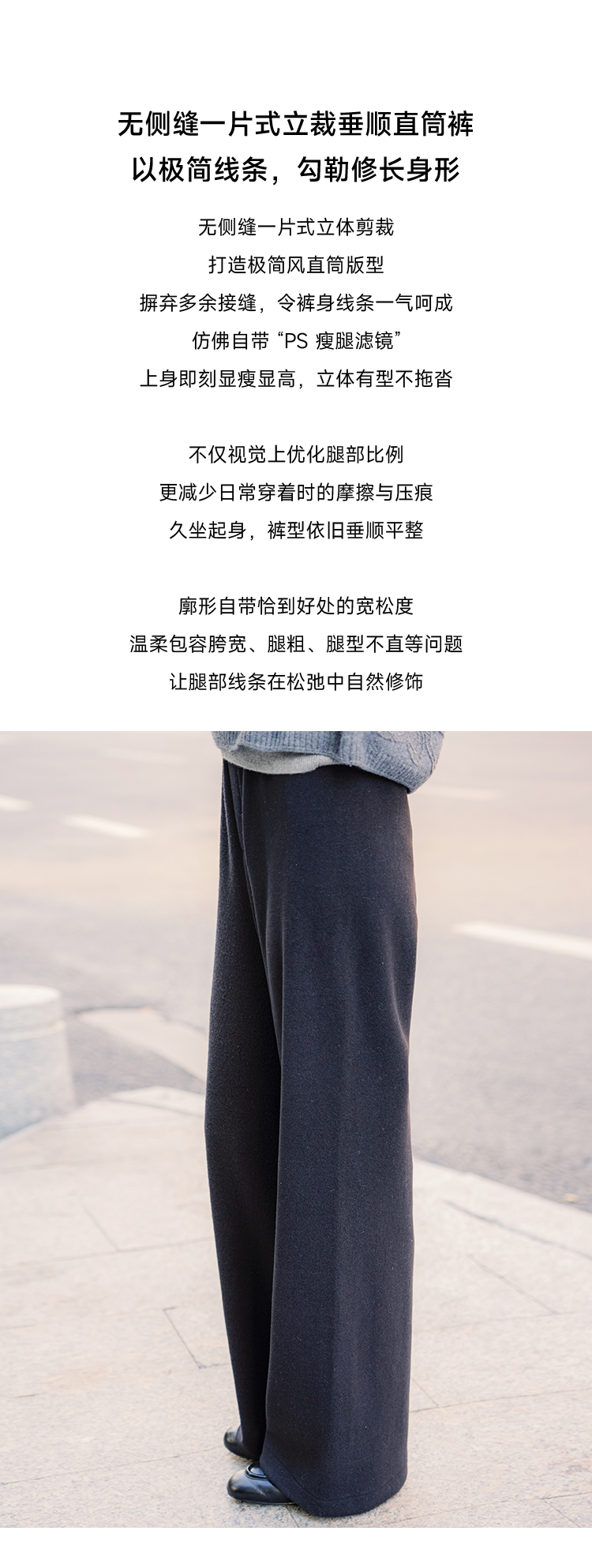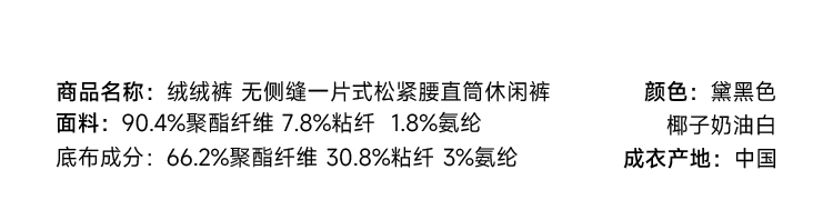 绒绒裤 无侧缝一片式松紧腰直筒休闲裤FCF3PAT140