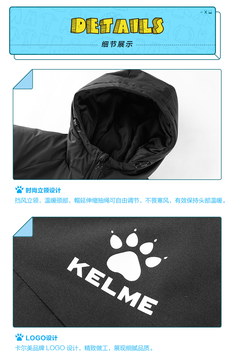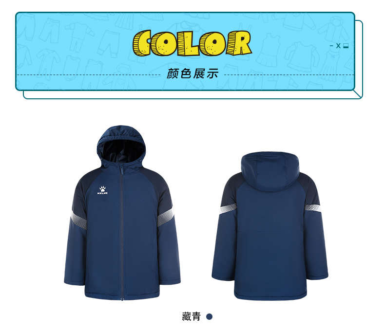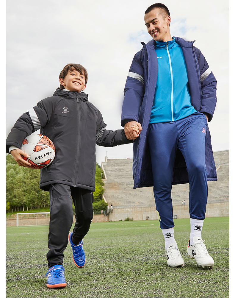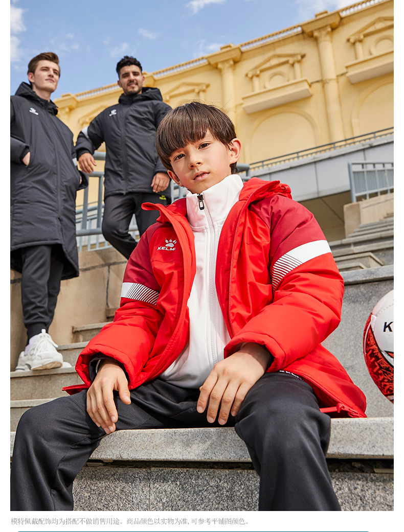卡尔美 儿童连帽短款棉服中甲同款足球训练服连帽保暖棉衣
