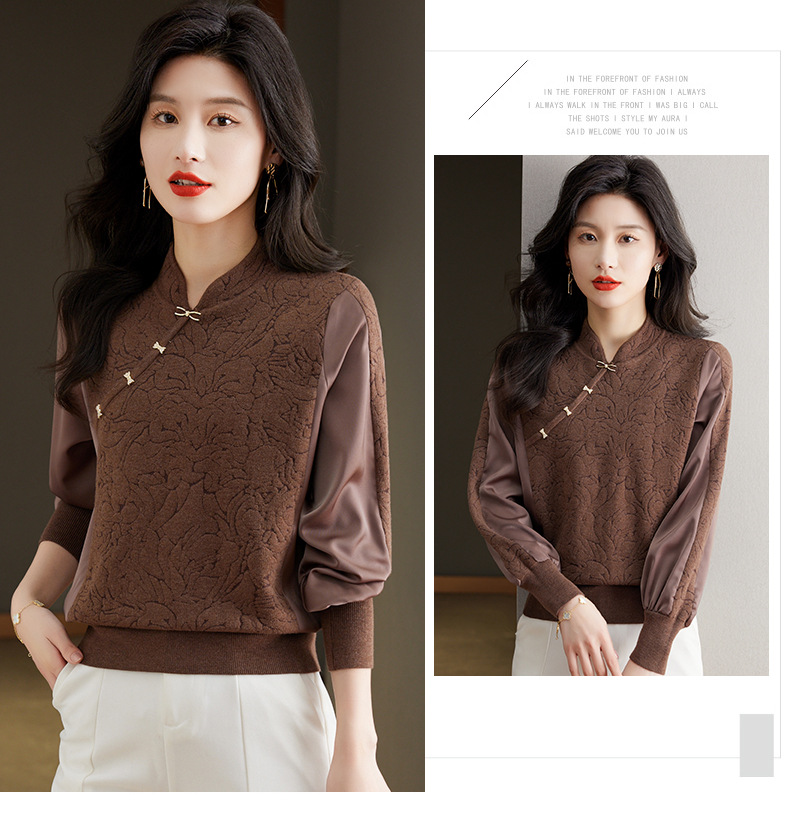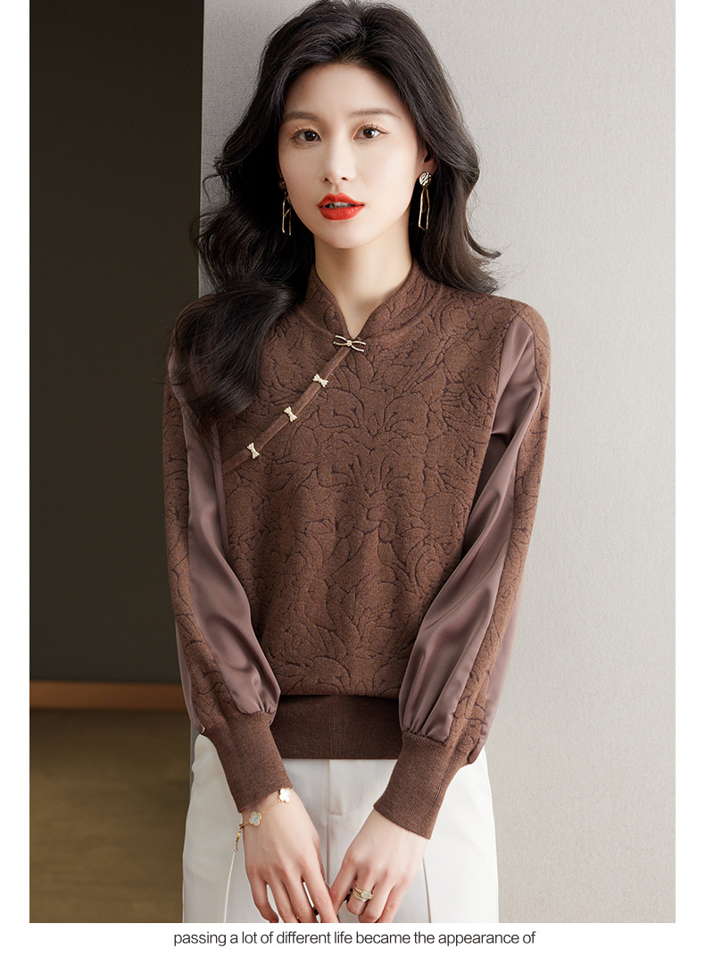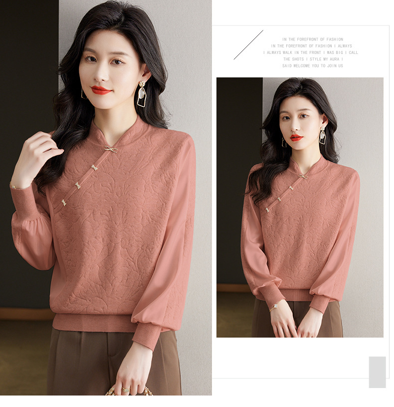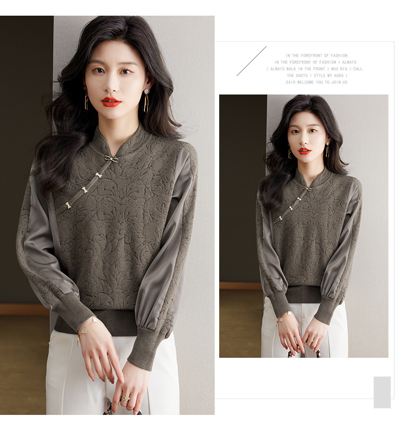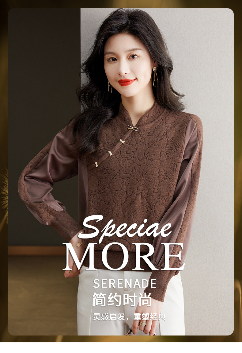 中式立领上衣,早春薄款针织衫CC-17-1602