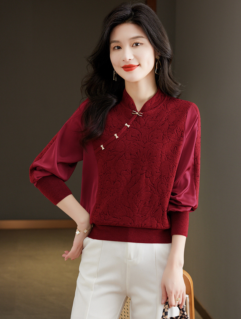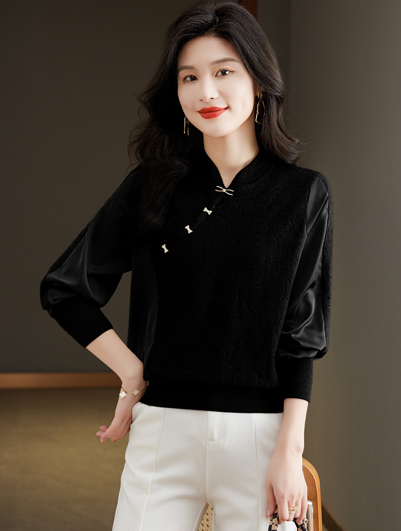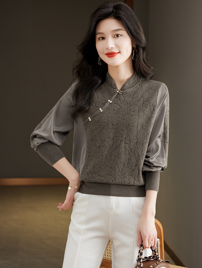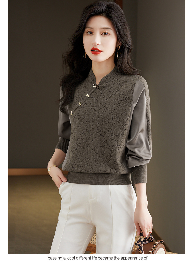 中式立领上衣,早春薄款针织衫CC-17-1602