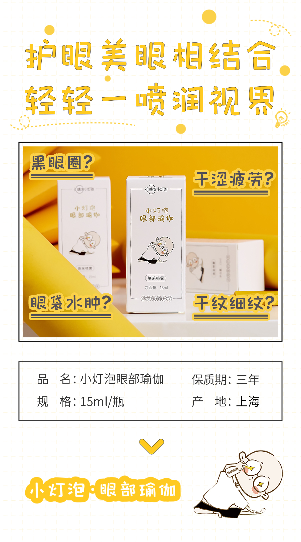 【晚安小灯泡眼部瑜伽 买2送1再送1】 湖南卫视 我是大美人力荐 3秒雾化润眼喷雾 明亮双眸 适用干涩疲劳 干纹细纹 黑眼圈
