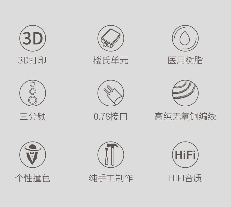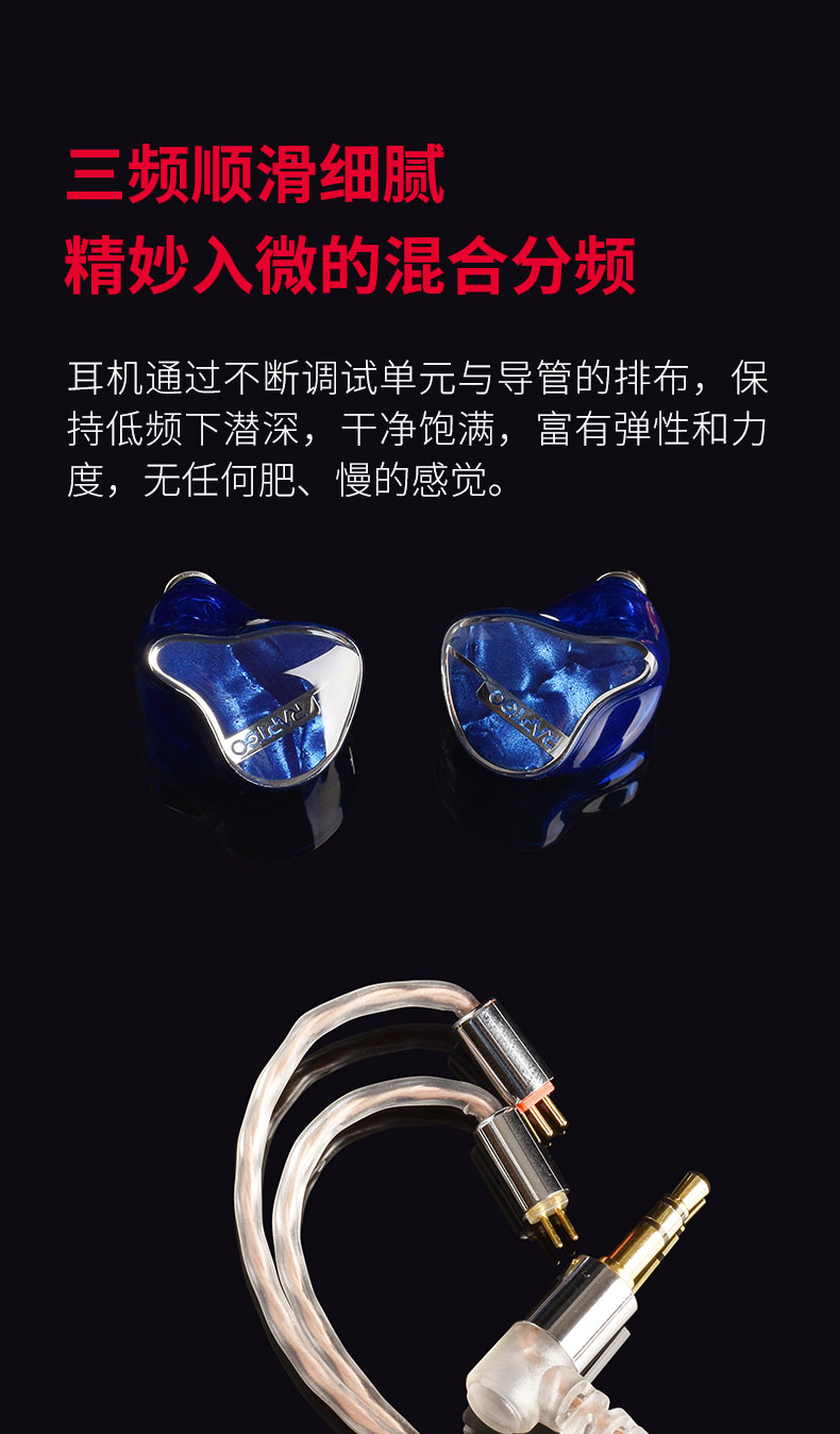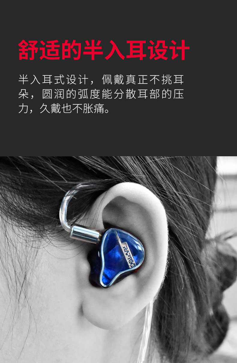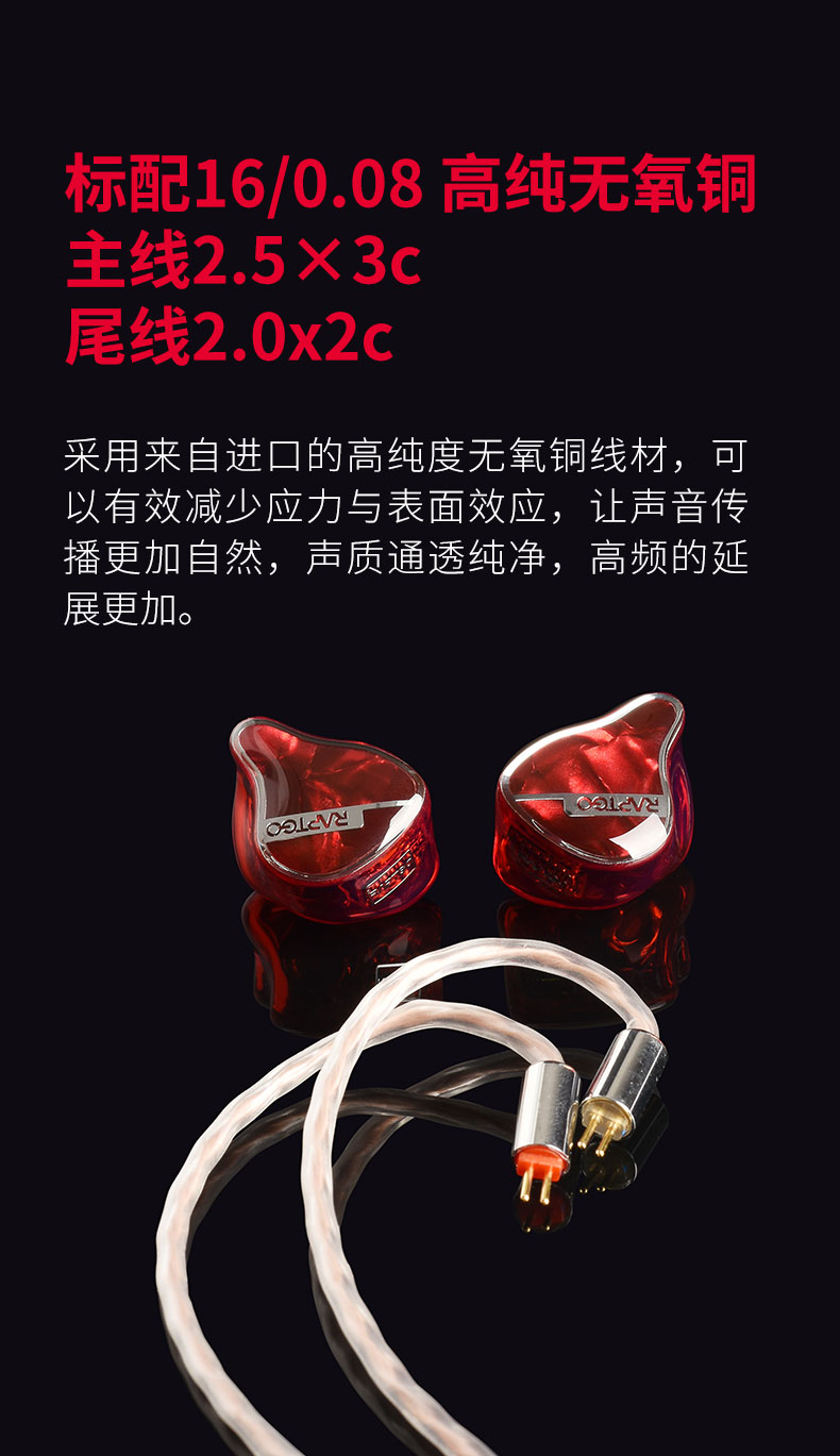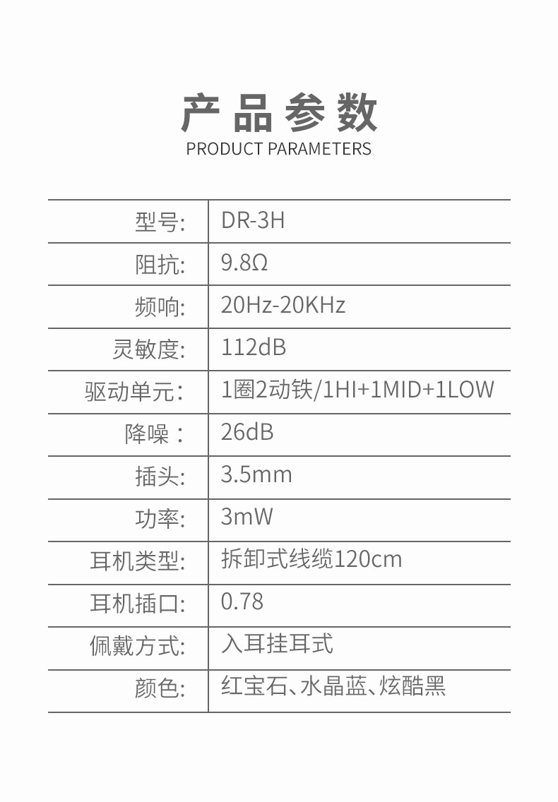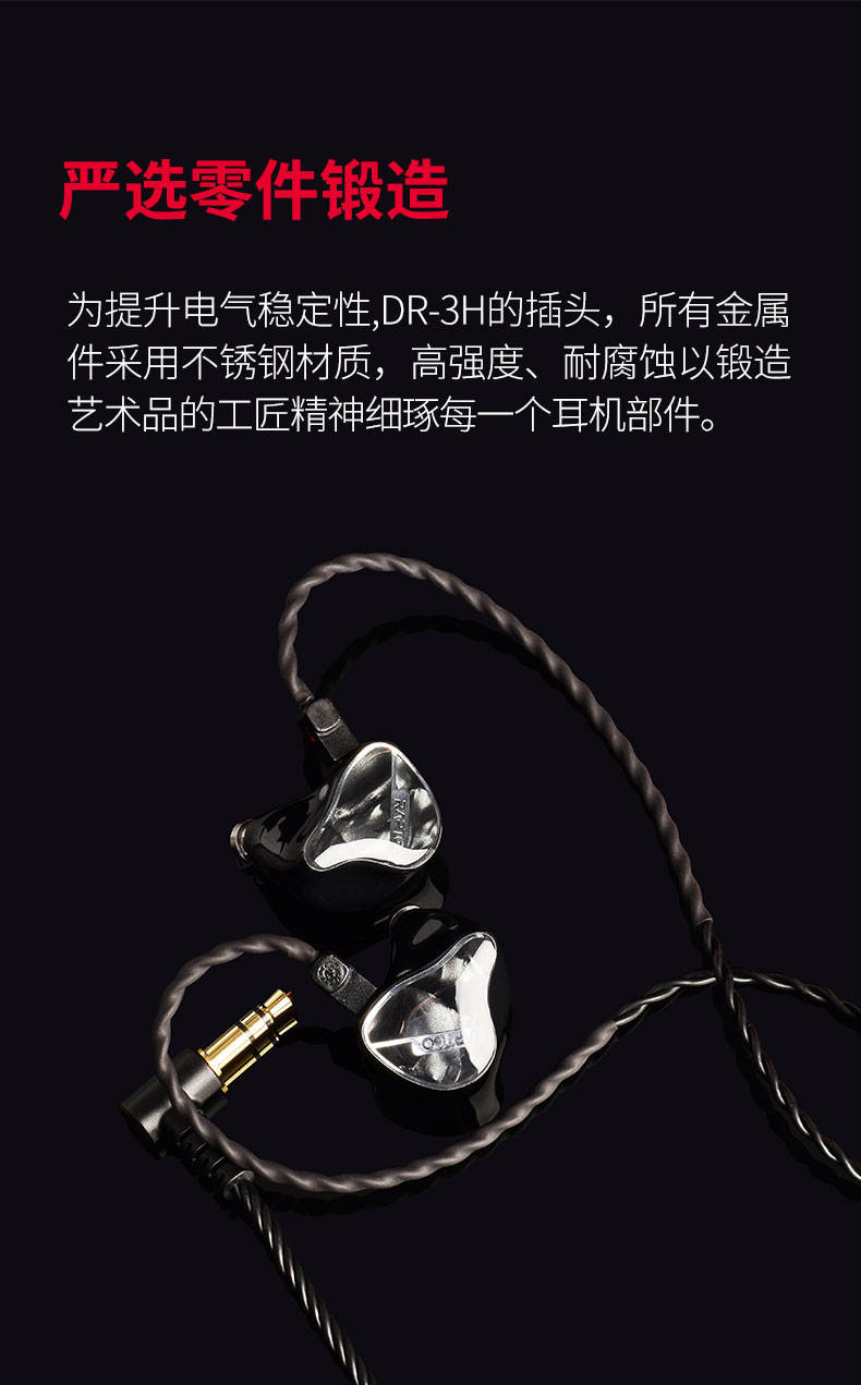 RAPTGO 绕耳式三单元楼氏圈铁定制耳机可换线HiFi娄氏高解析3D打印入耳式发烧潮 DR 3H
