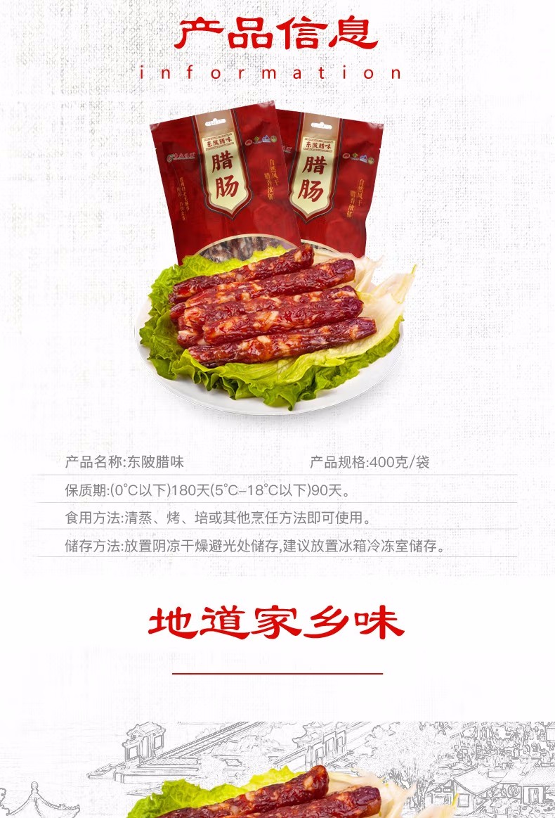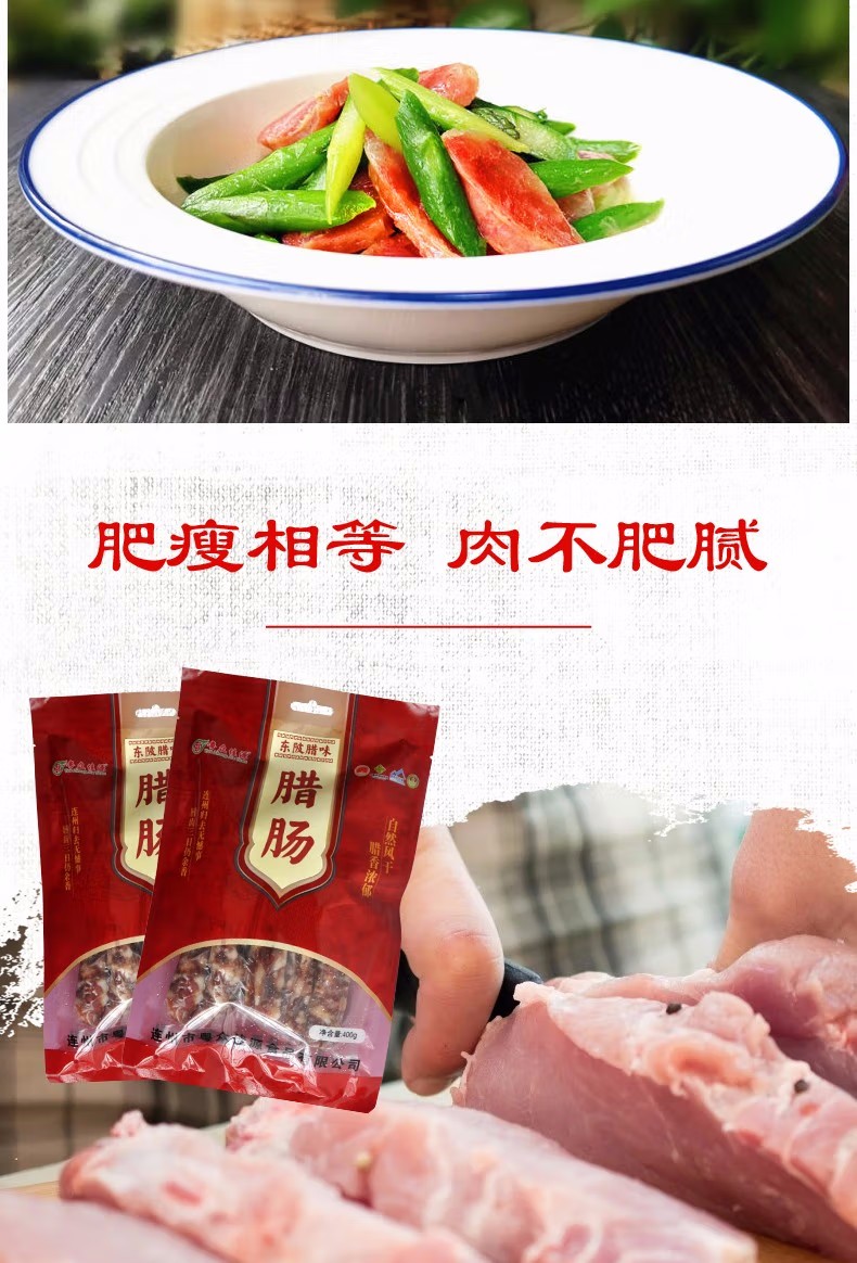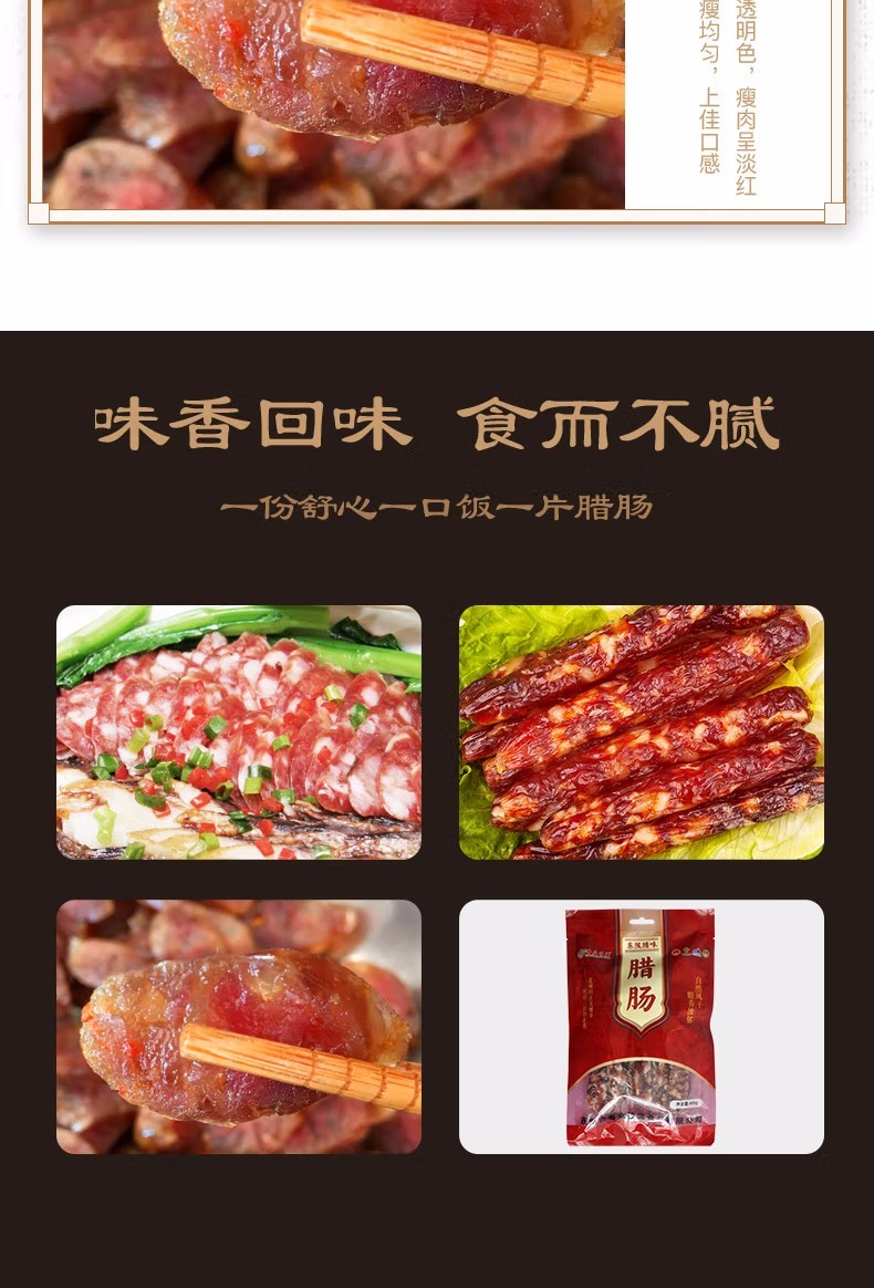 连州特产粤众佳源东陂腊肠袋装400g 传统风味自然风干