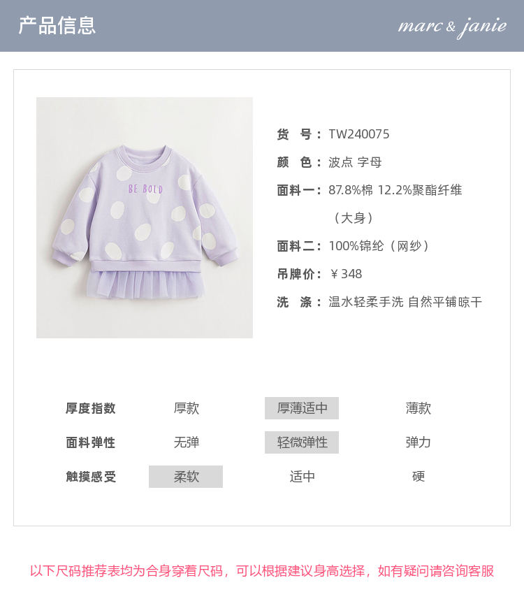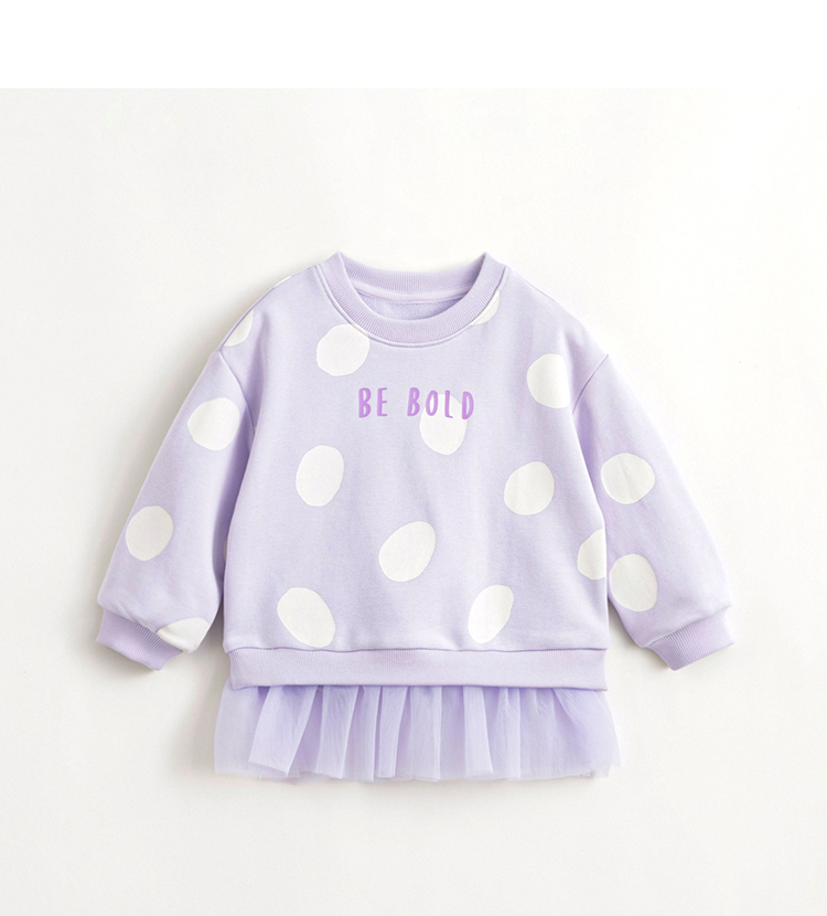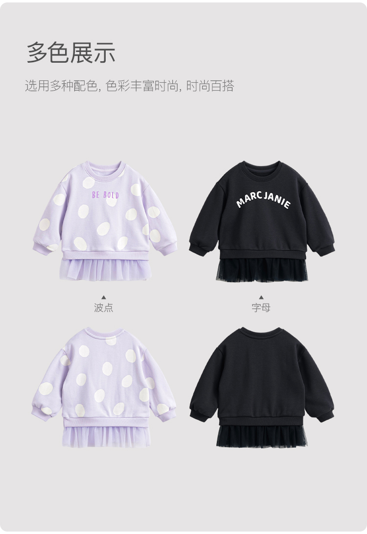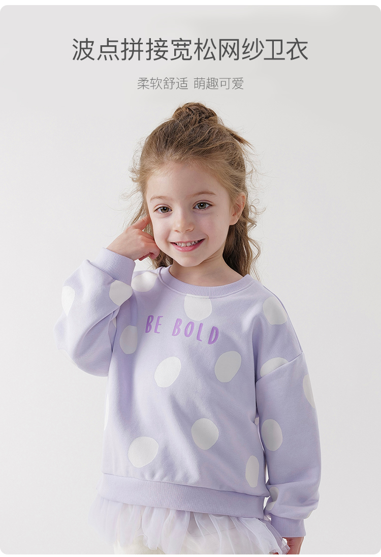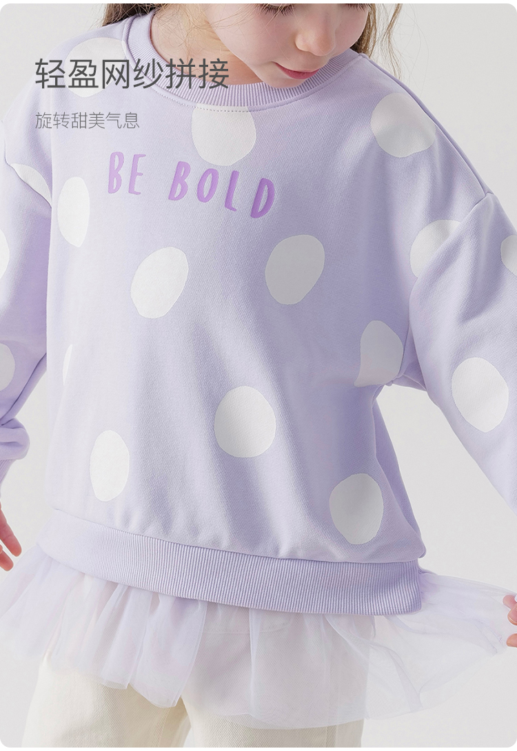 马克珍妮女童超舒棉波点网纱拼接卫衣 儿童上衣春装新款240075