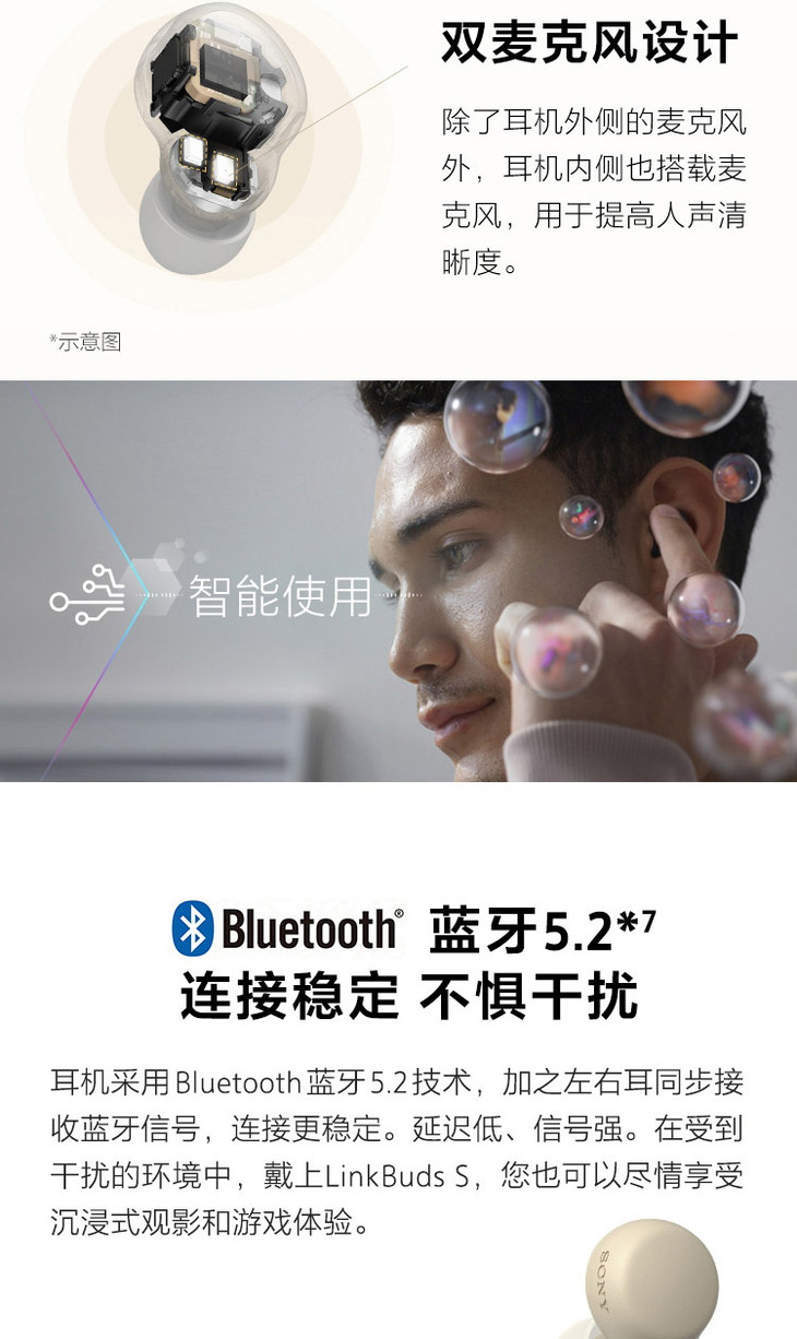 索尼 LinkBuds S 真无线降噪耳机