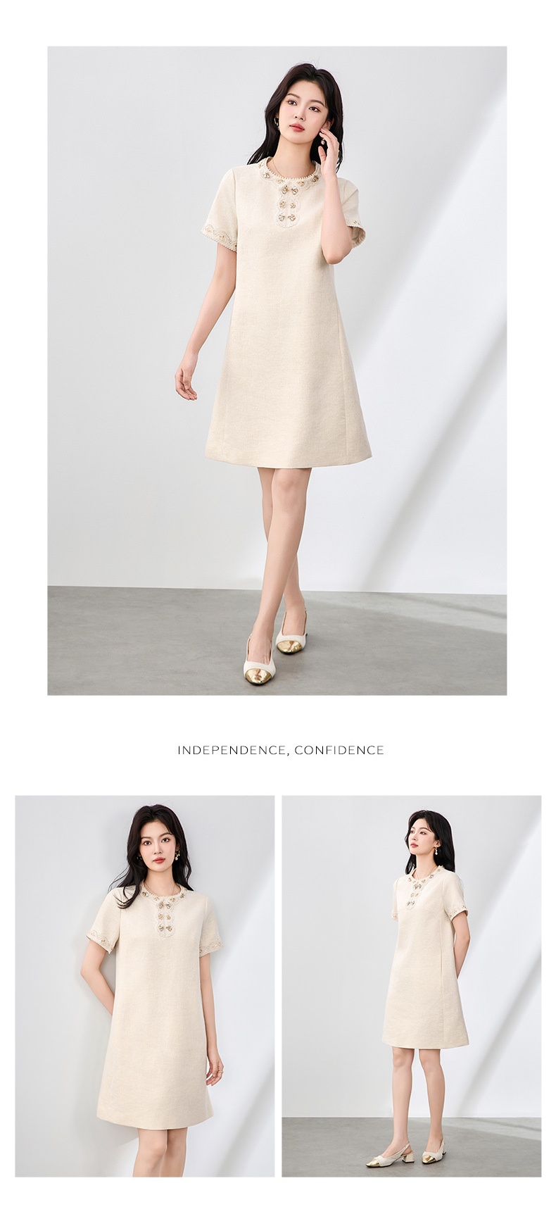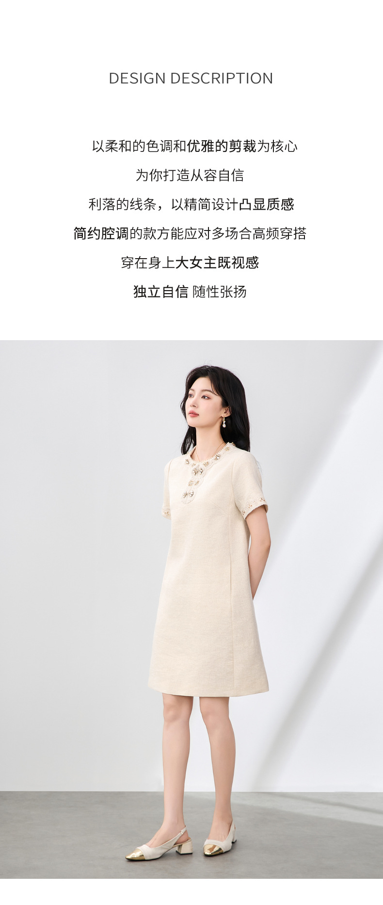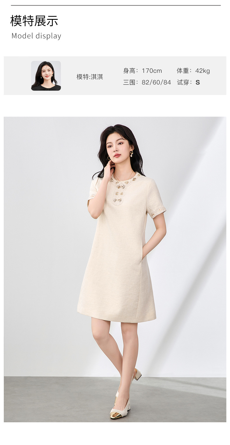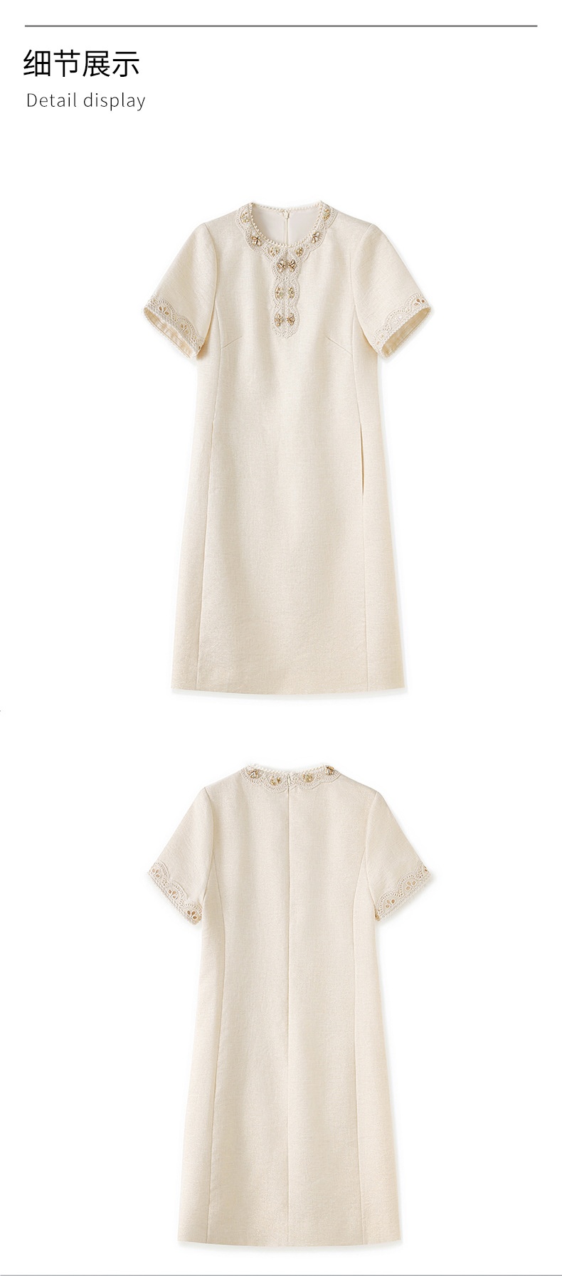 「高货wl」全新升级【铂金会员367/天猫489/差价122】(92656)洛诗琳法式宫廷风重工钉珠刺绣花边金丝麻显瘦A字连衣裙
