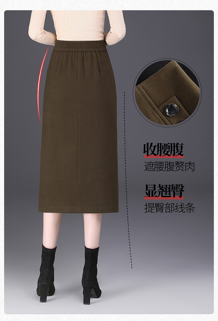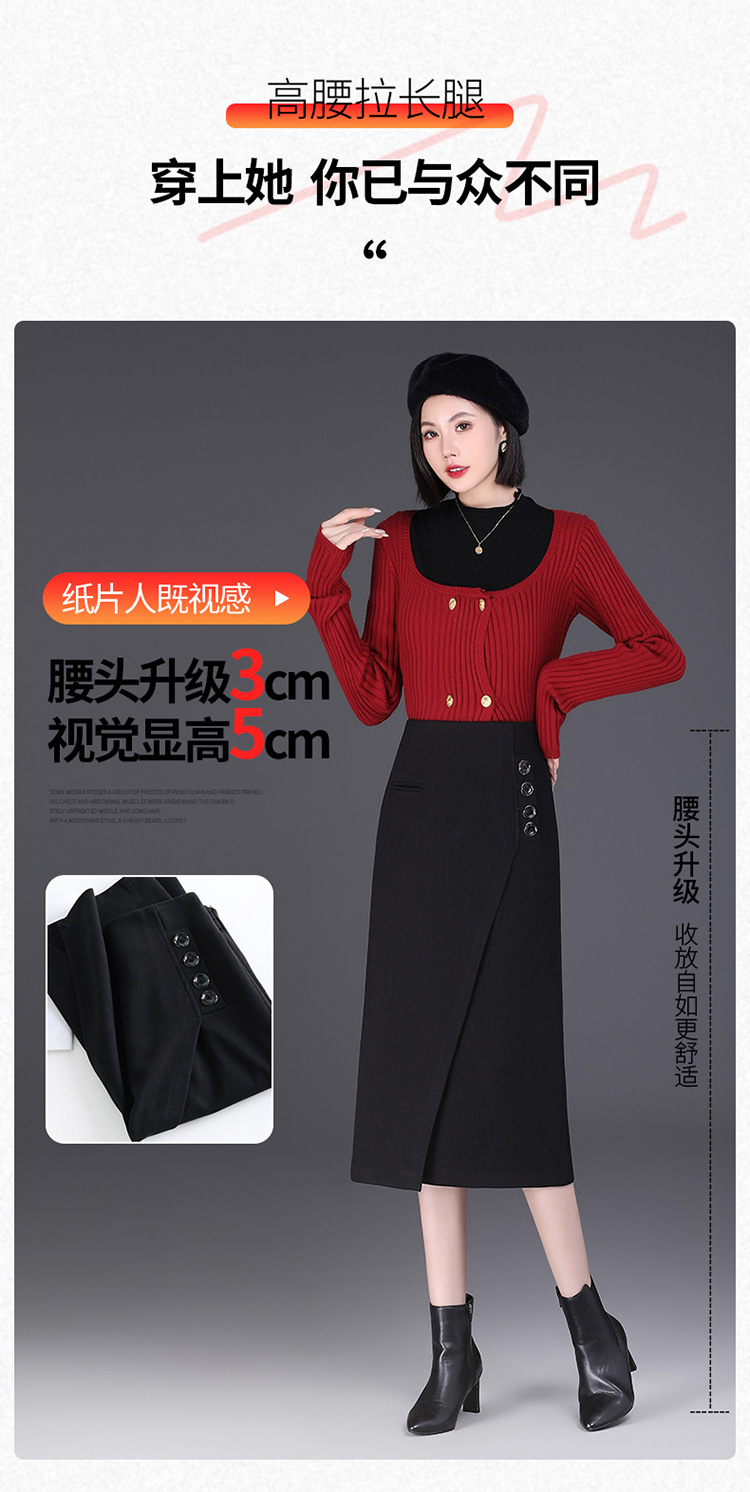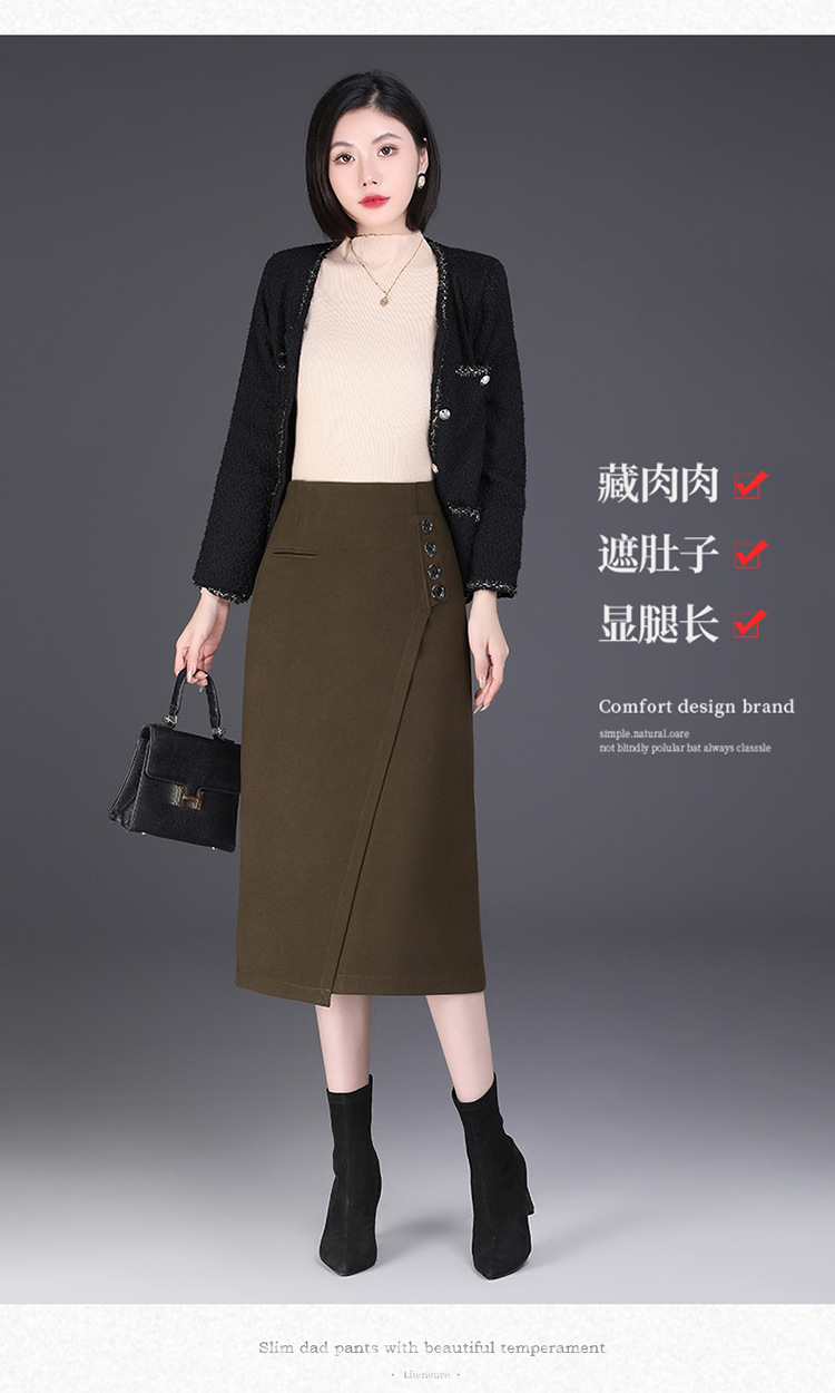 WM-68110-L时尚毛呢不规则包臀半身裙女2025秋冬新款a字裙一步休闲中长裙 商品图4