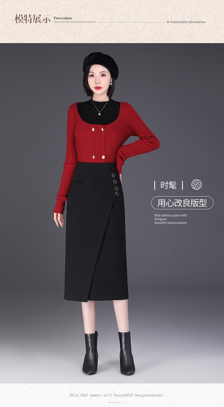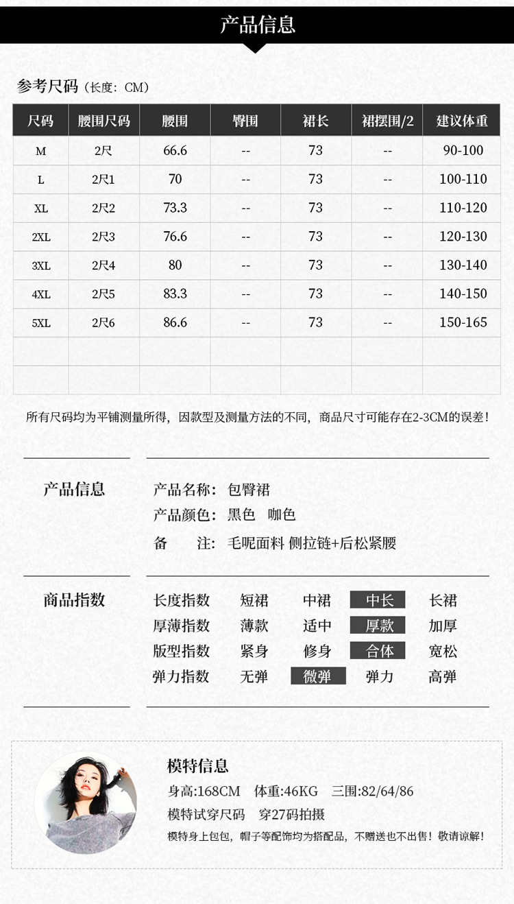 WM-68110-L时尚毛呢不规则包臀半身裙女2025秋冬新款a字裙一步休闲中长裙 商品图2