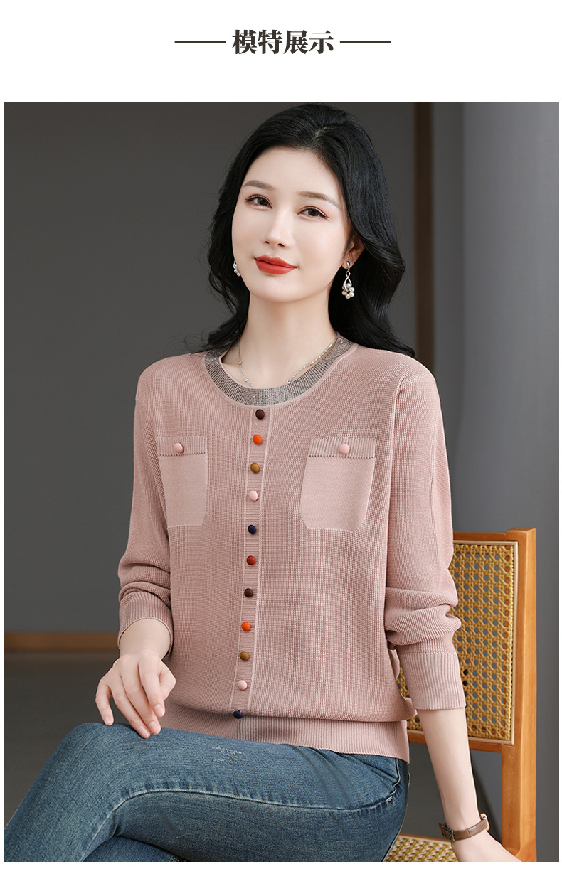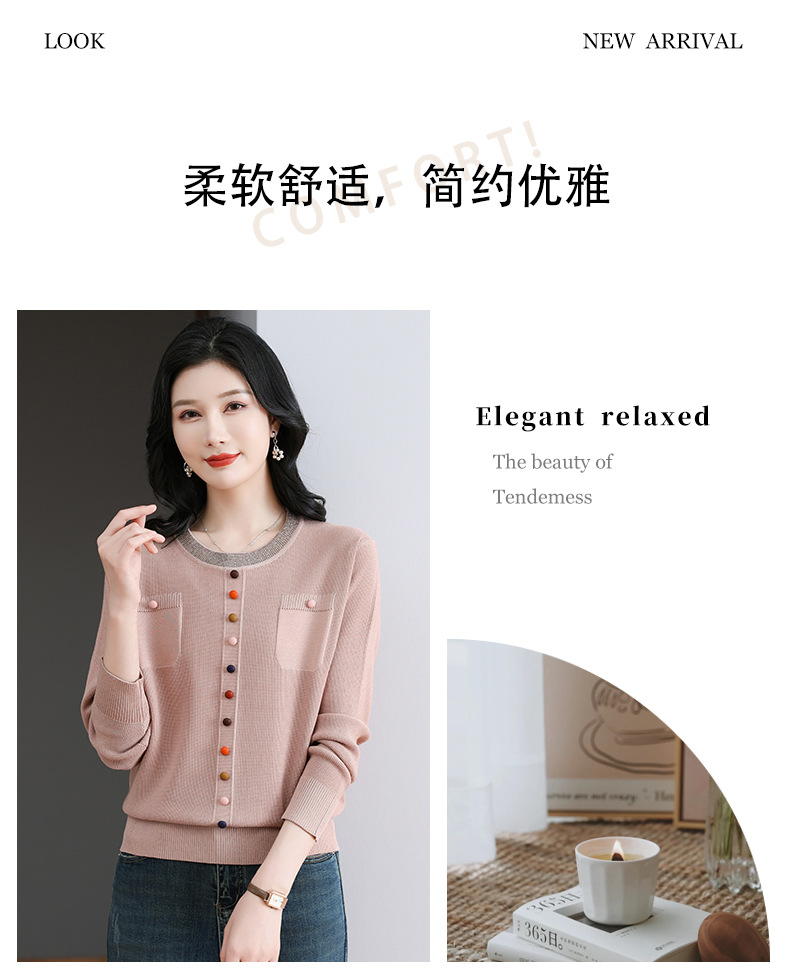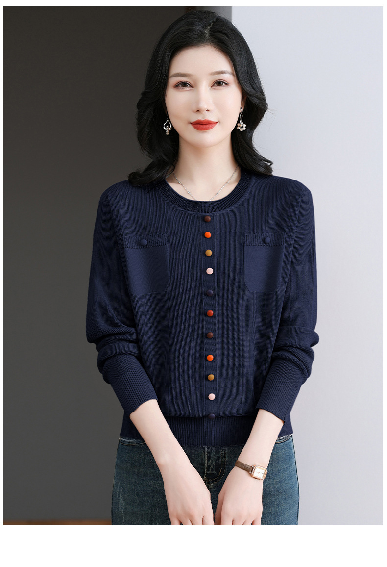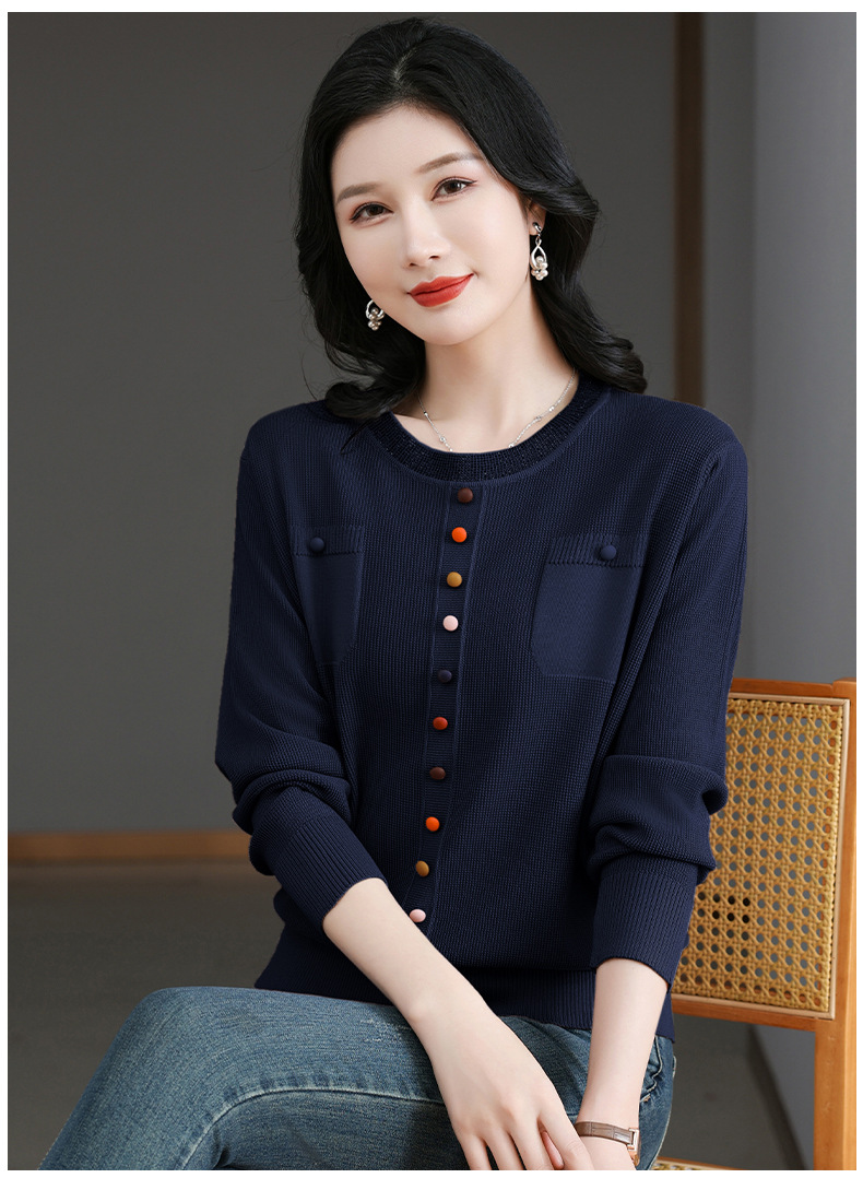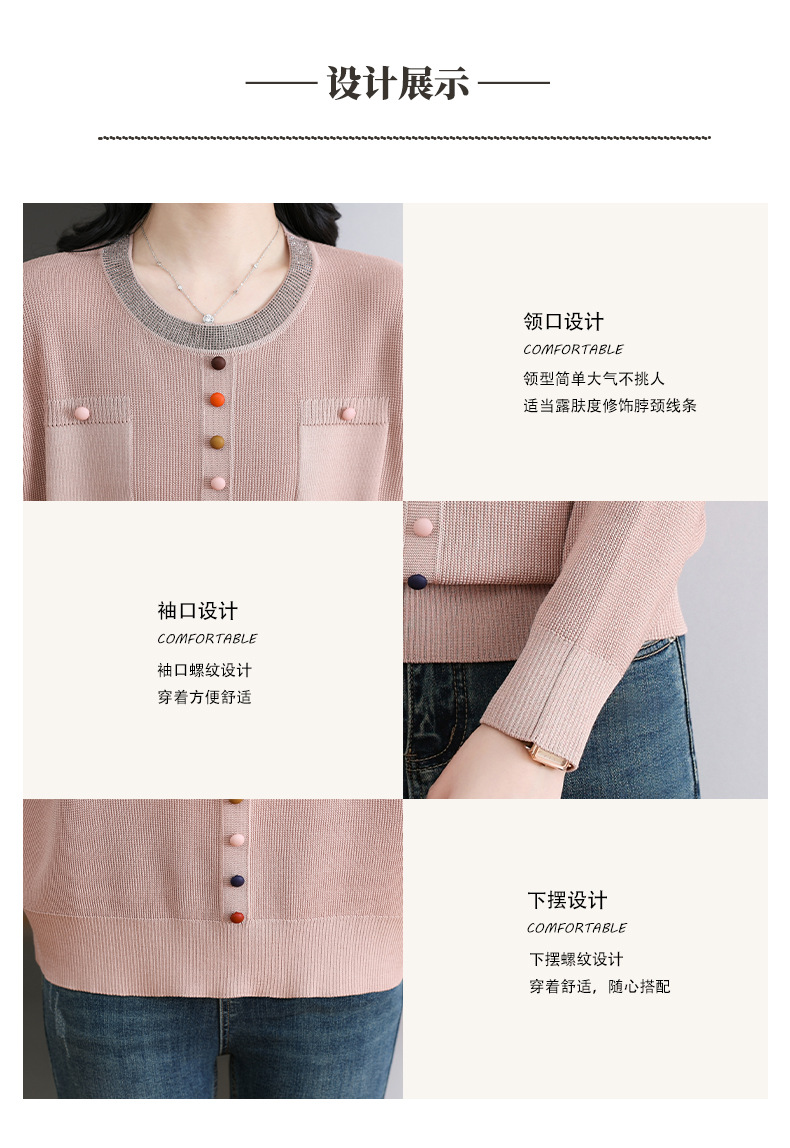 CC-BSM-716圆领针织衫女士2025春秋季新款洋气宽松长袖t恤遮肚显瘦上衣