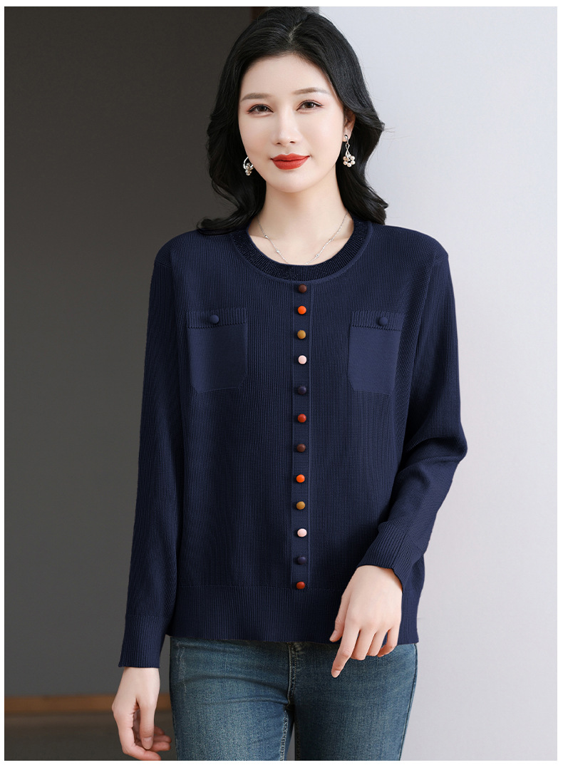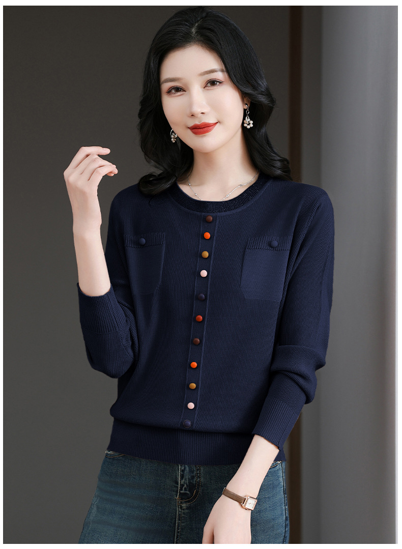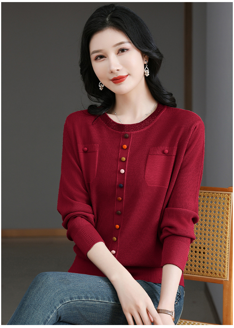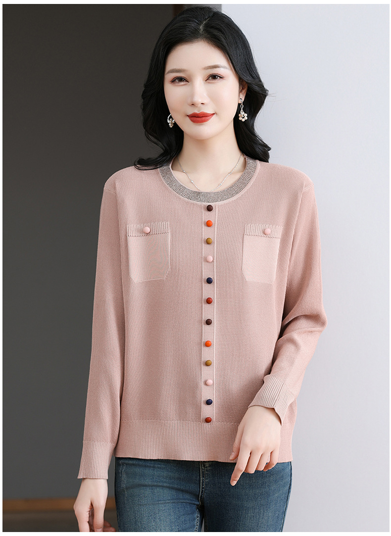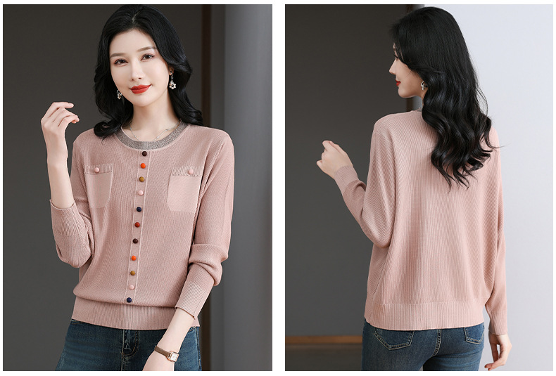 CC-BSM-716圆领针织衫女士2025春秋季新款洋气宽松长袖t恤遮肚显瘦上衣