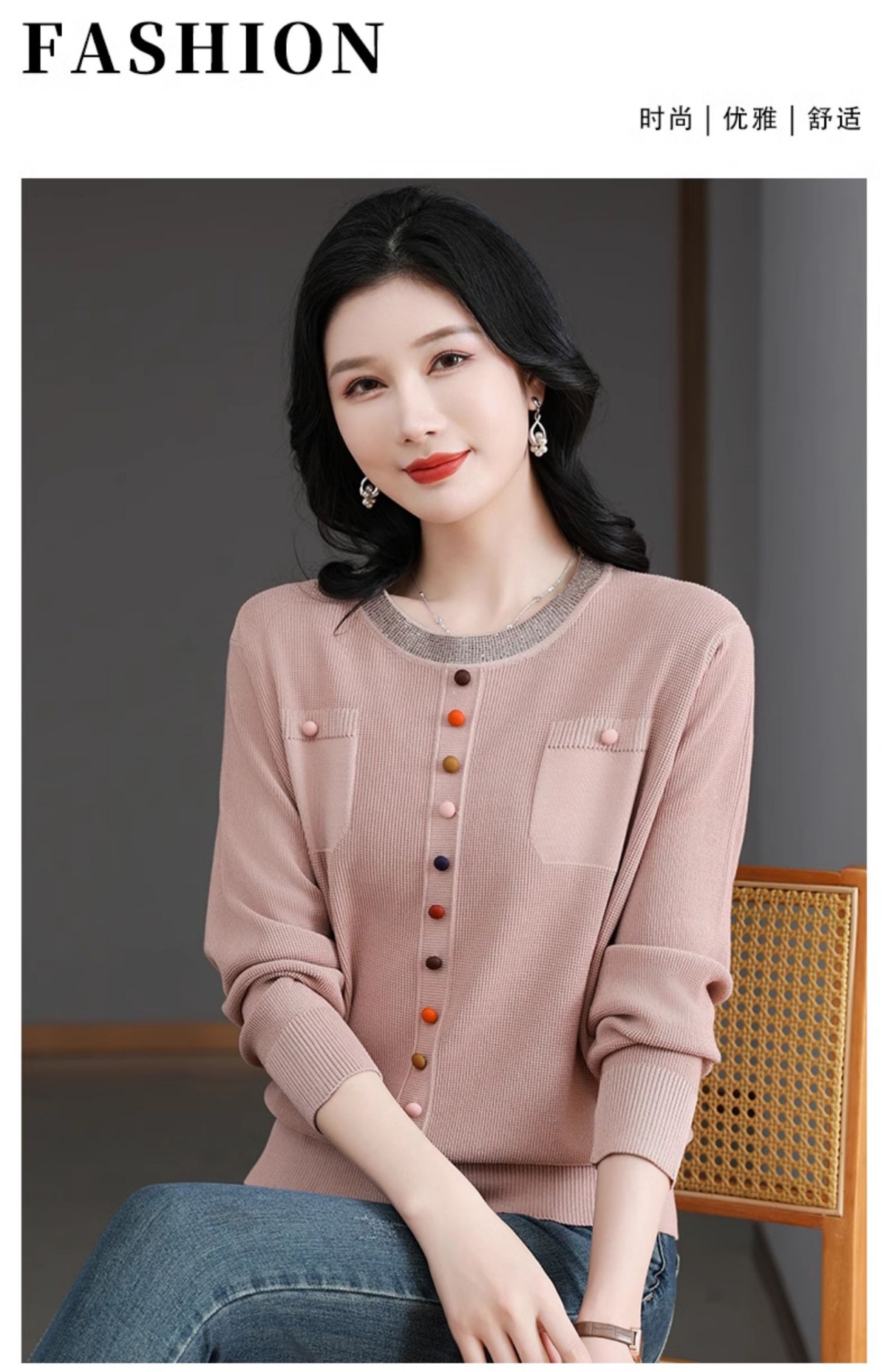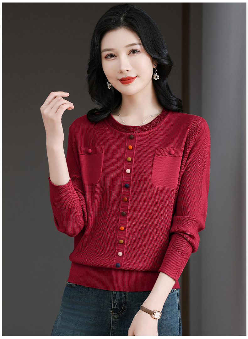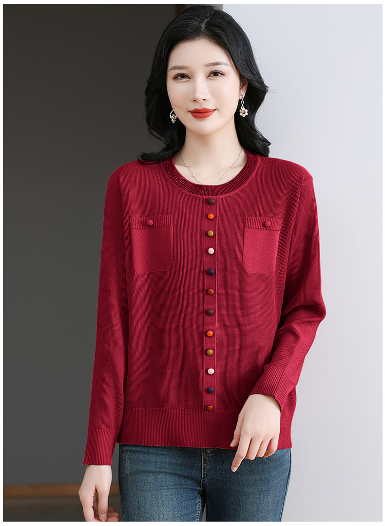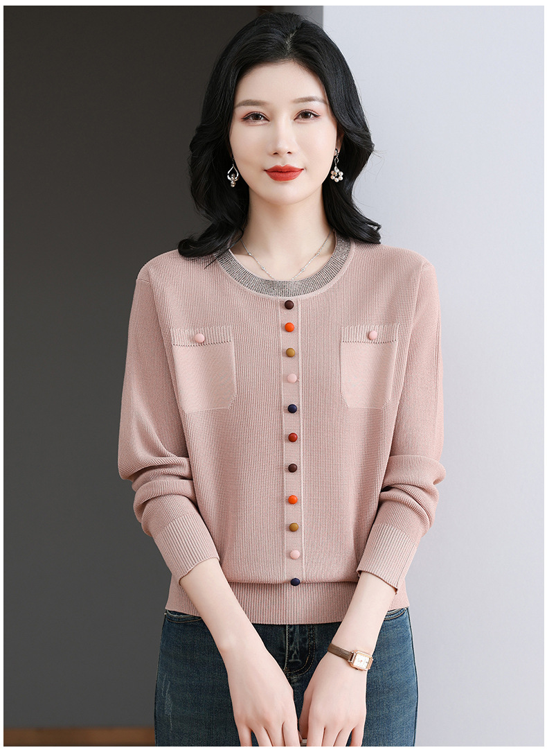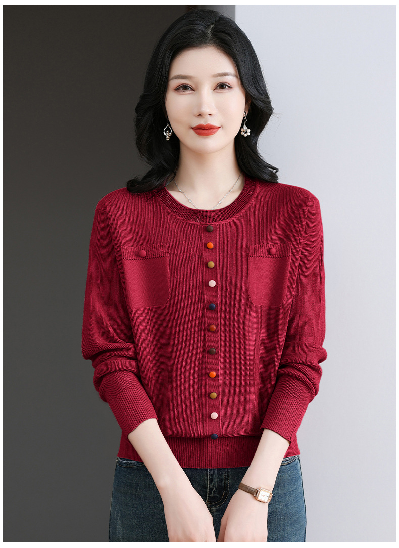 CC-BSM-716圆领针织衫女士2025春秋季新款洋气宽松长袖t恤遮肚显瘦上衣