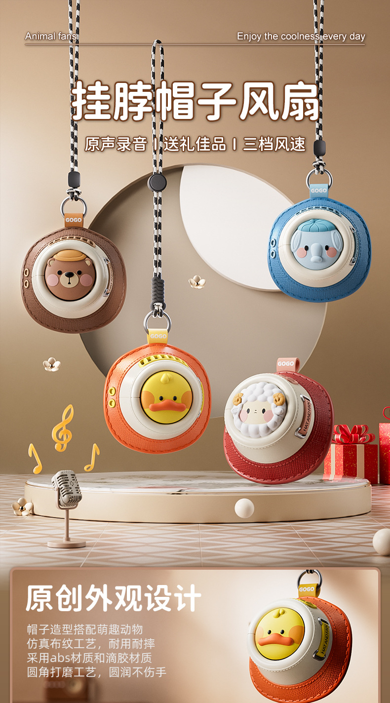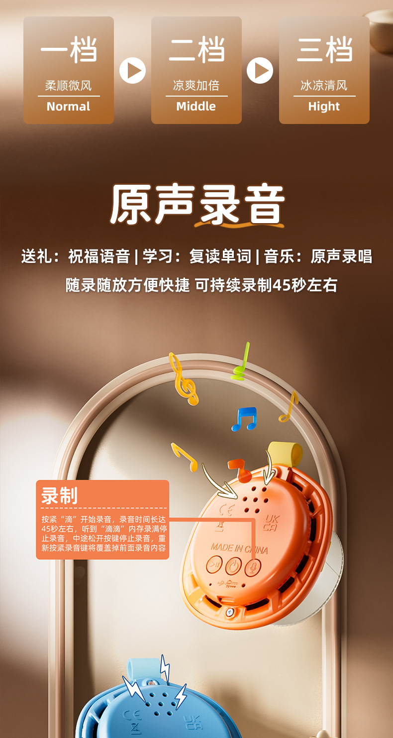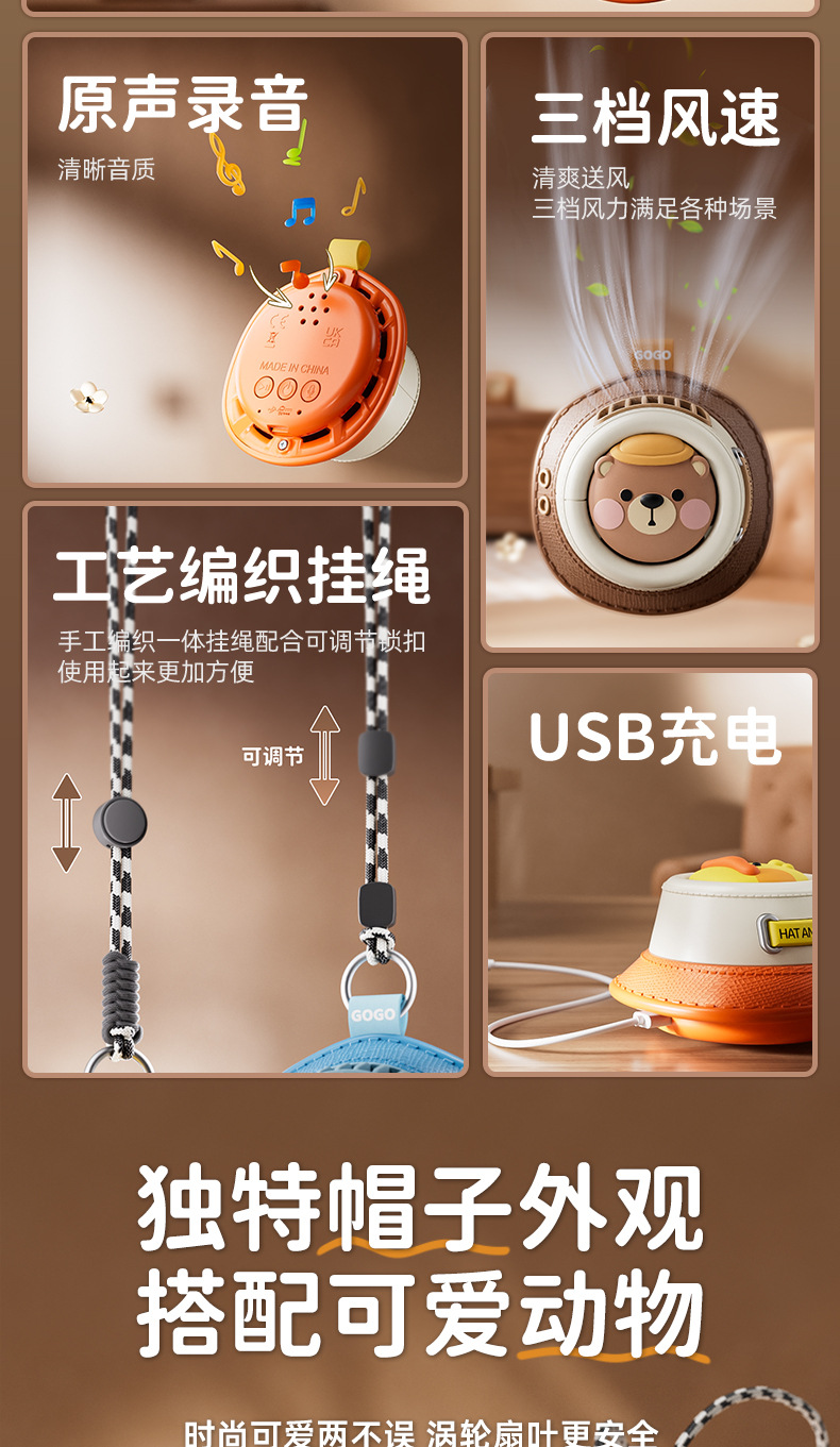 【清爽送风,赶走闷热瞬间清凉!】萌宠挂脖挂绳风扇小型,便携创意可录音电风扇无叶,迷你时尚可爱两不误涡轮扇叶更安全 -lm!
