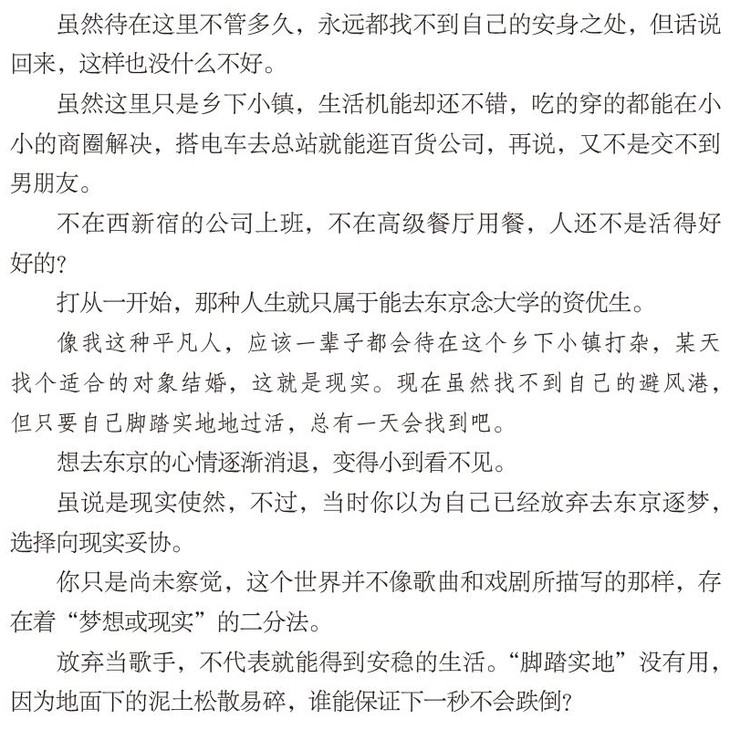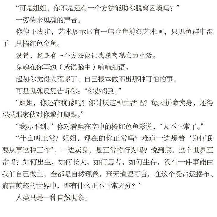 本书以两起相对独立的死亡事件为线索,牵出了三起相互交织的案件,讲述了女主人公阳子在时代裹挟中的个人挣扎,因平庸无能被生活碾压,堕落,一步步滑落到不可救药的深渊。故事发生在2014年的日本都市。