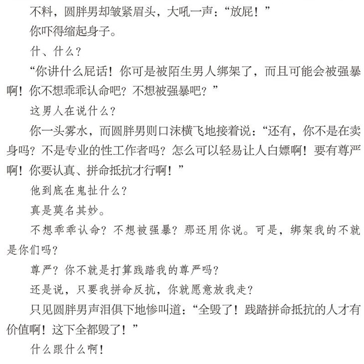 第三条线以第二人称叙述阳子的人生经历,从阳子童年时期开始,到女尸被发现为止,细腻地描写了阳子的成长变化和被社会吞噬的过程。