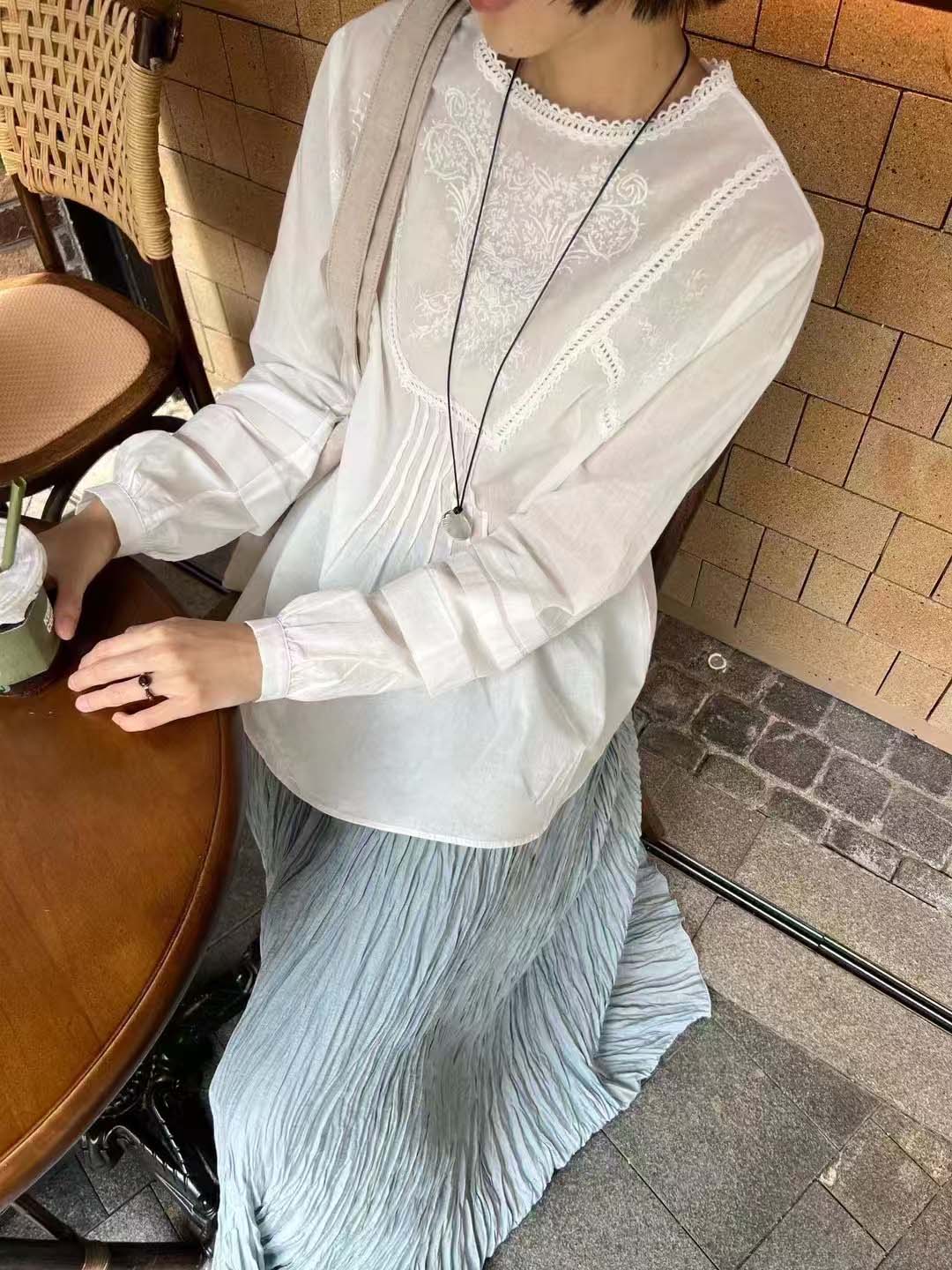「K」洛诗琳50633法式蕾丝衬衫2025夏季蕾丝刺绣镂空上衣10403