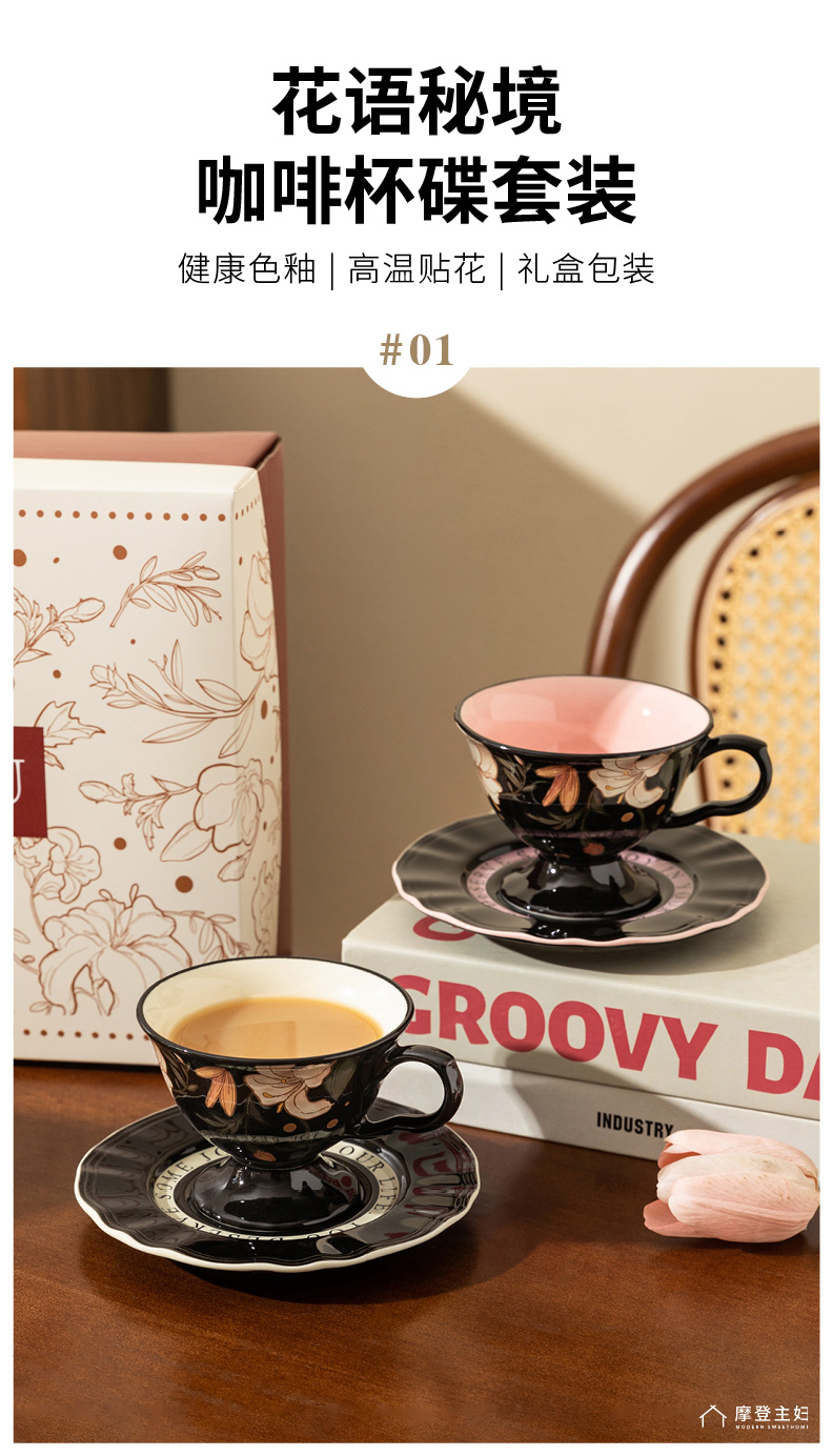 摩登主妇复古咖啡杯碟套装高档精致2025新款马克杯子结婚新婚礼物