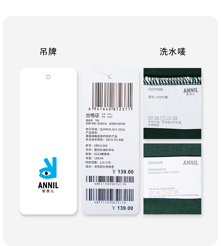 男童圆领长袖针织衫秋季新款安奈儿童装EB531585