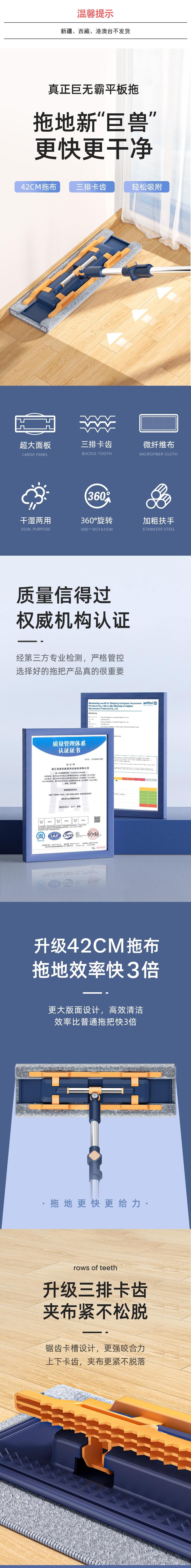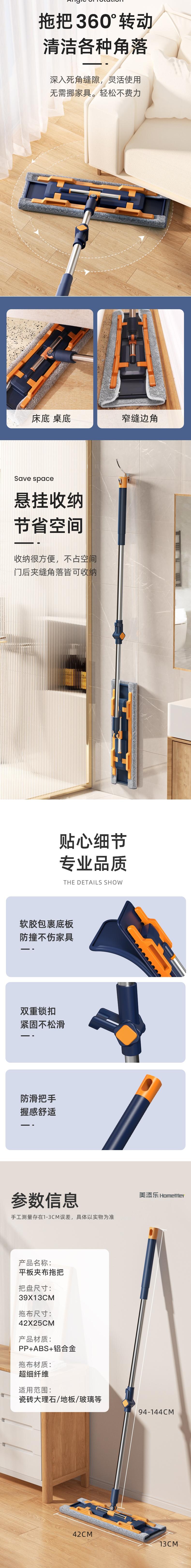 美添乐 家用干湿两用平板夹抹布拖 6949555005440