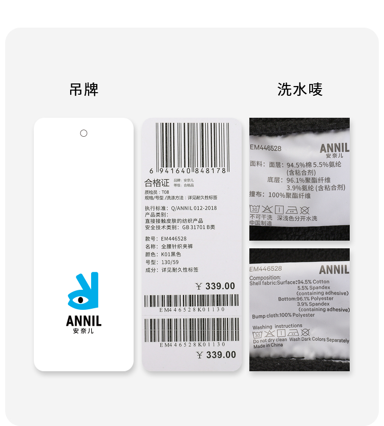 男女童全腰针织夹裤冬季新款安奈儿童装EM446528
