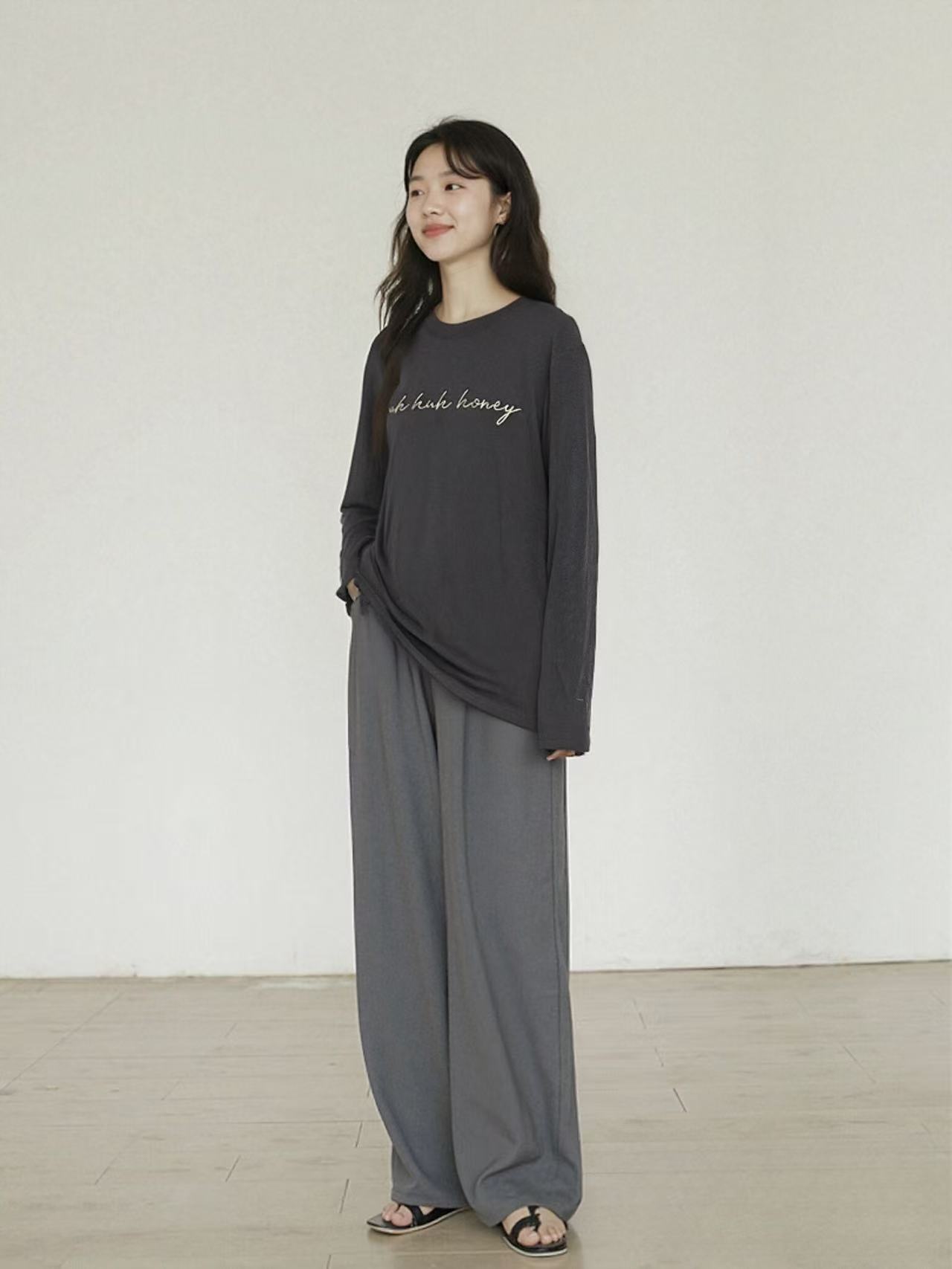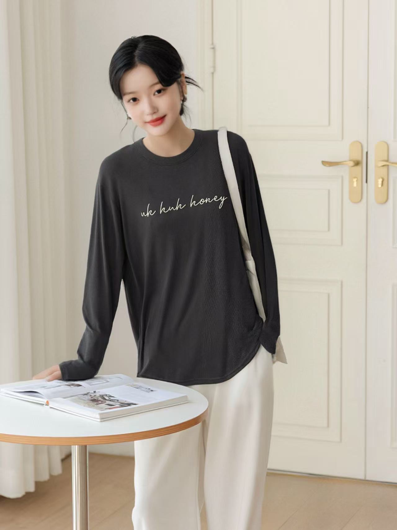 【超值特卖】666刺绣字母侧开叉长袖T恤打底衫-喜出