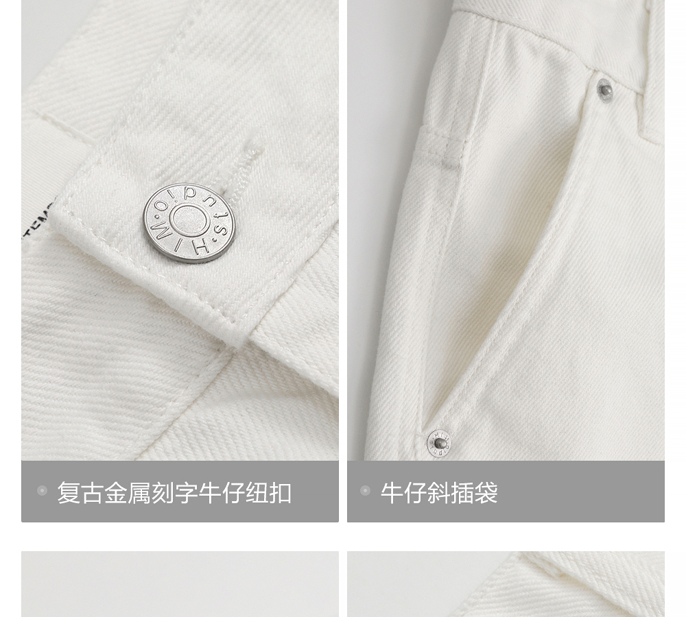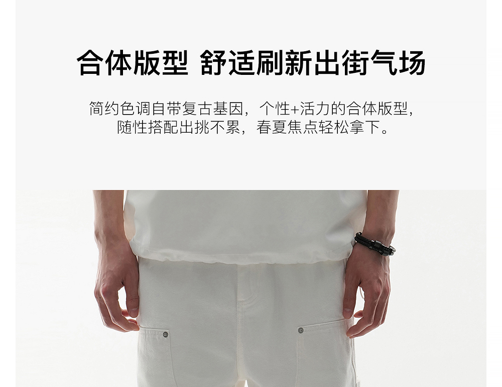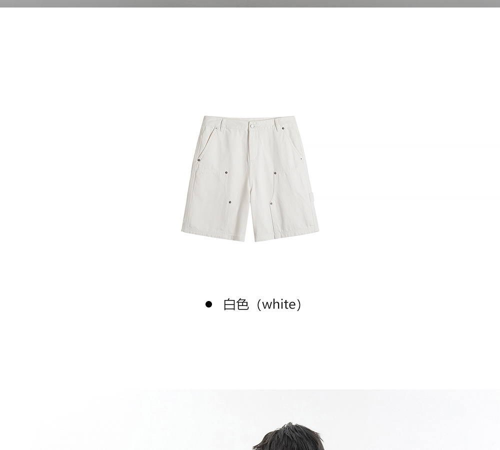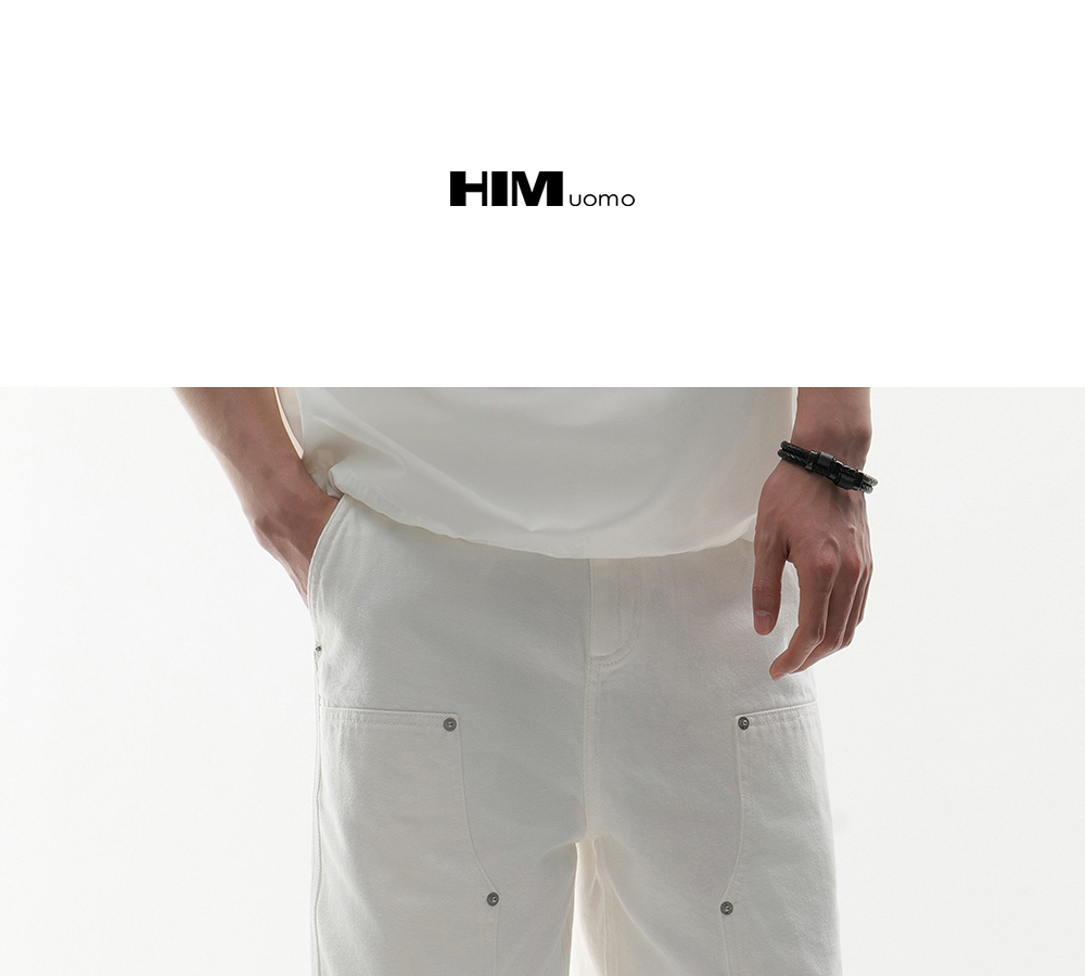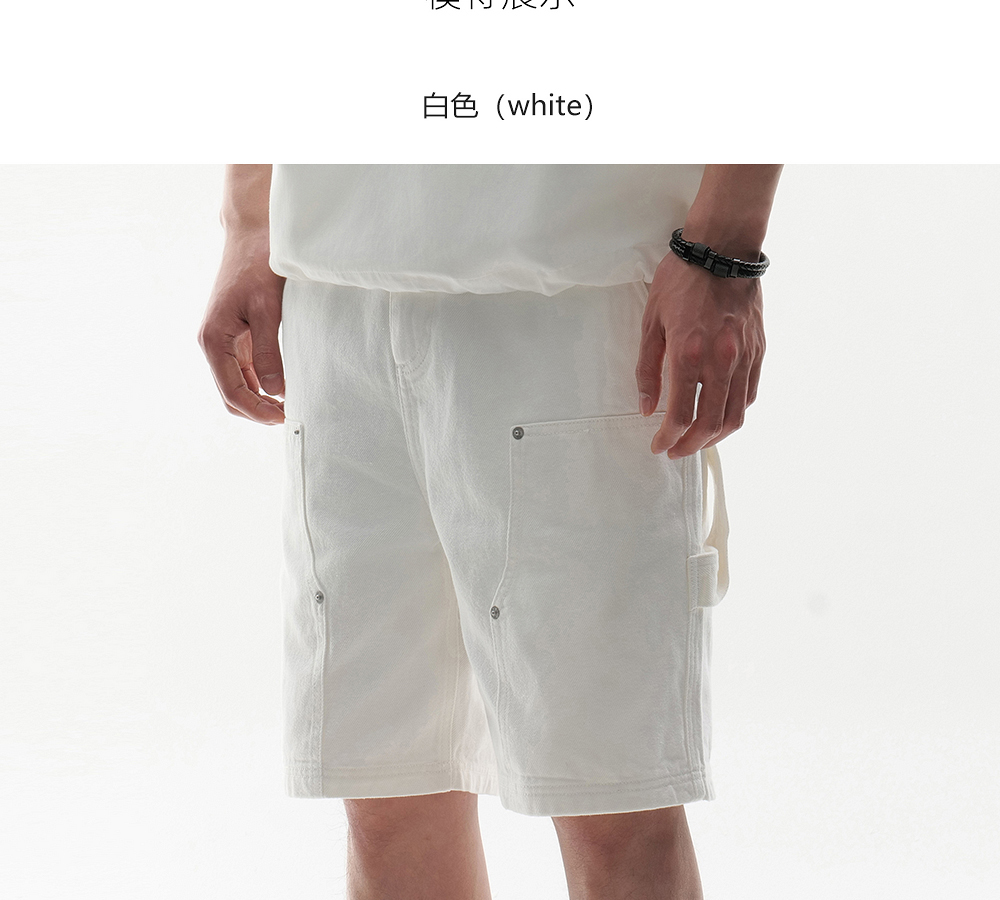HIM漢崇 白色工装牛仔短裤时尚潮流百搭休闲五分裤男 2026夏季
