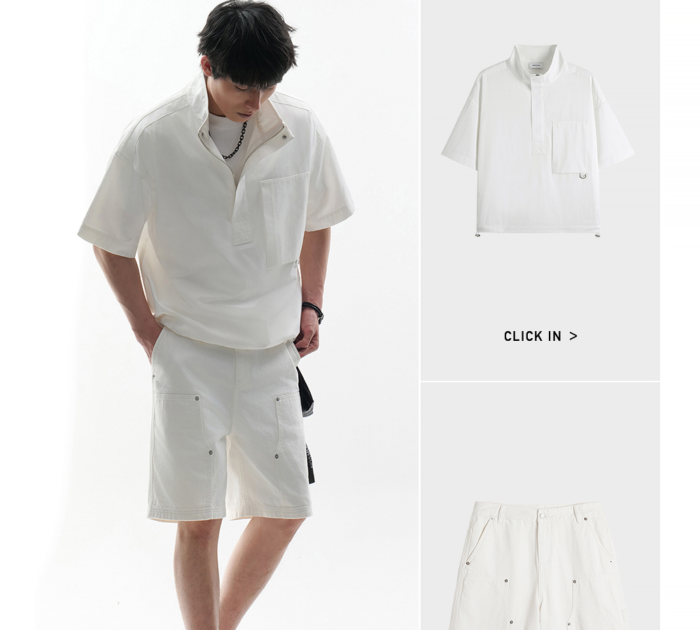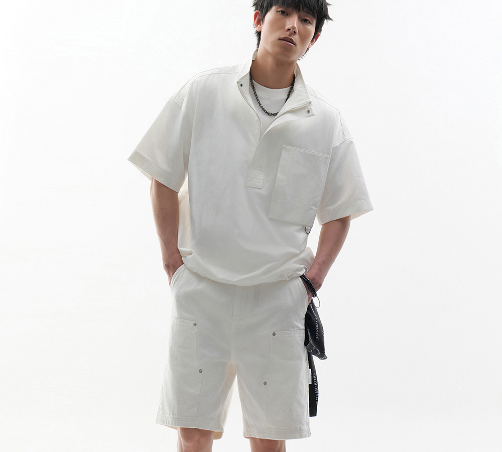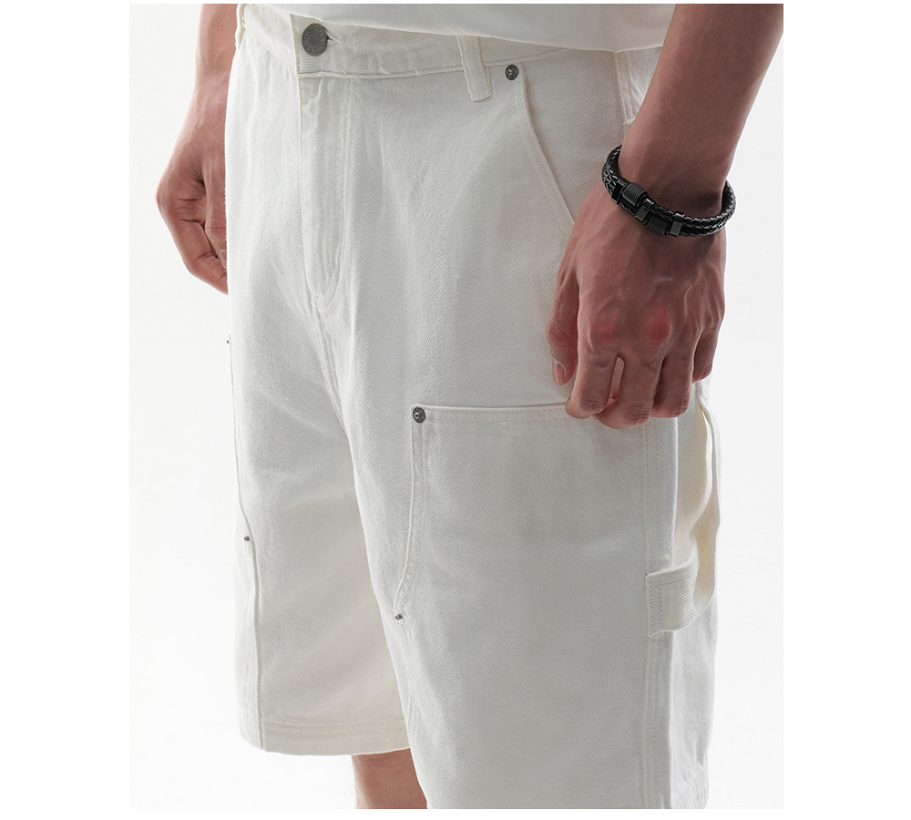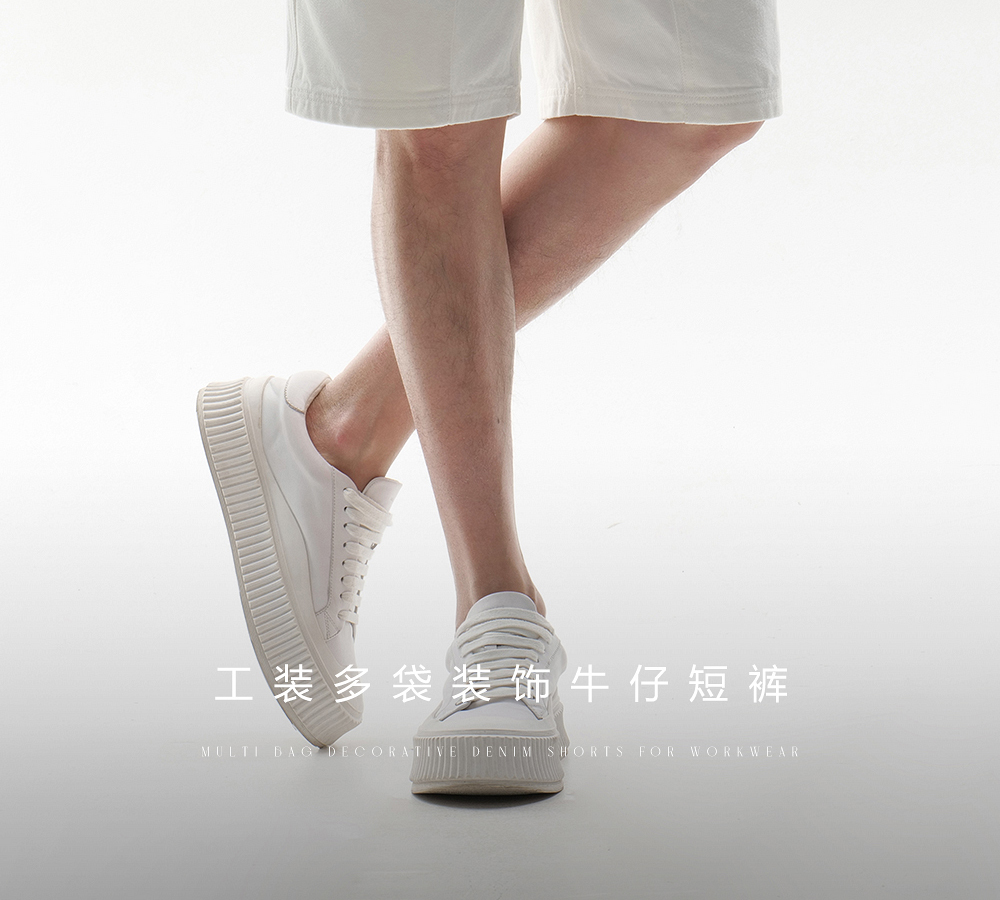 HIM漢崇 白色工装牛仔短裤时尚潮流百搭休闲五分裤男 2026夏季