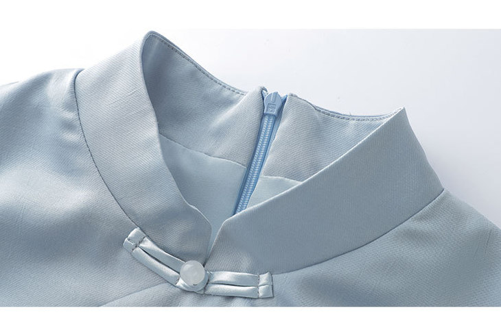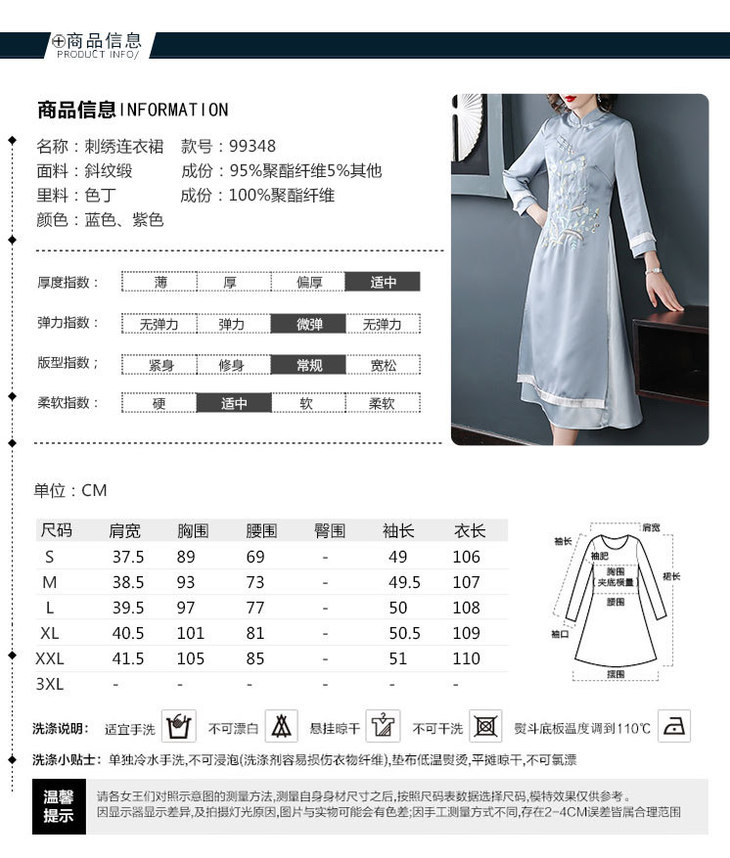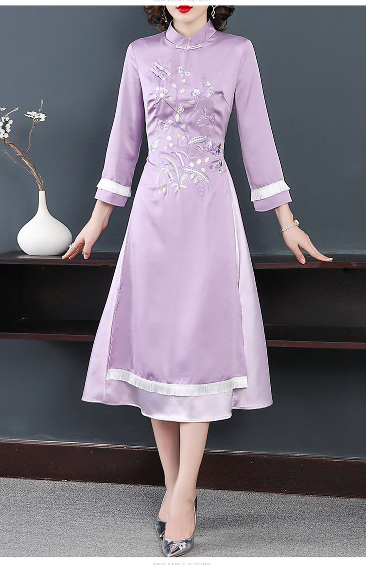 气质修身,小立领盘扣刺绣假两件连衣裙OG-99348