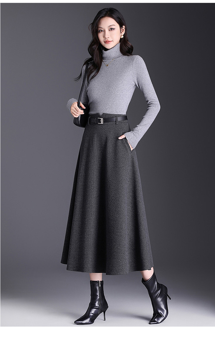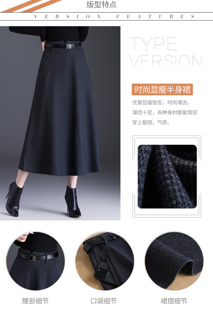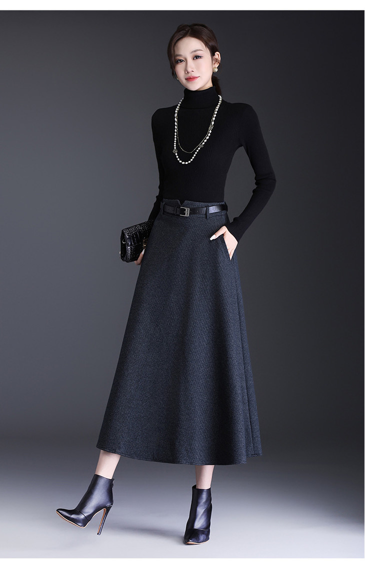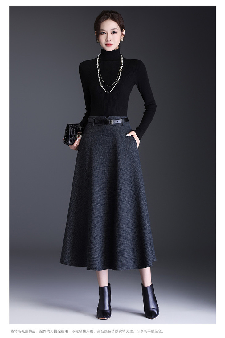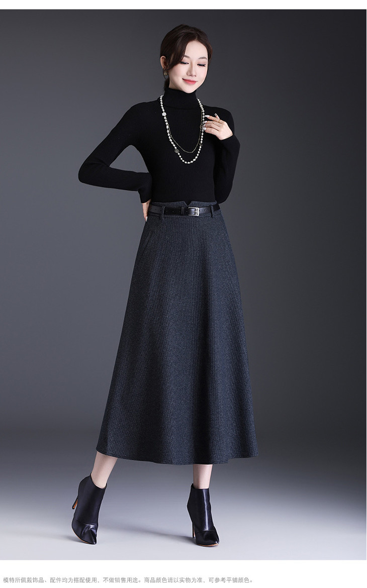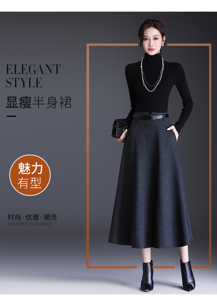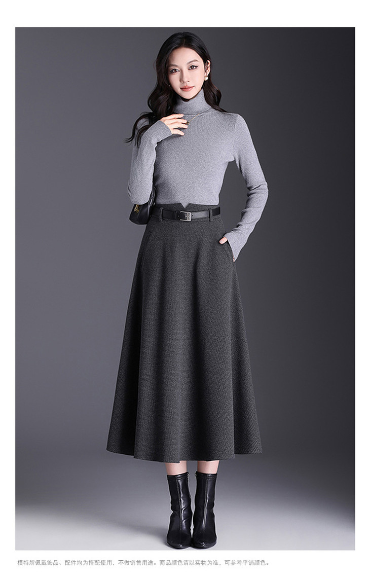 垂坠感通勤百褶大摆裙,长款高腰半身裙A字裙MYX-KYL-99866-L