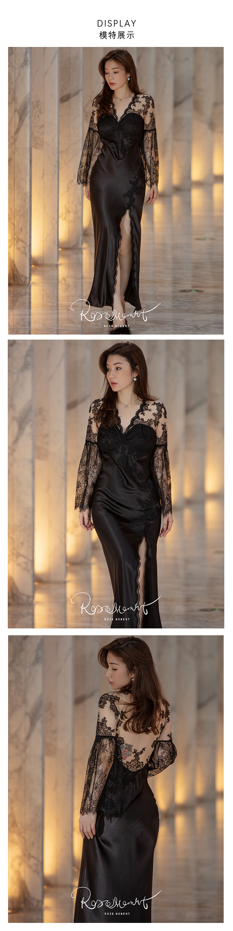 法式优雅侧开叉蕾丝美背长袖裙 S231169