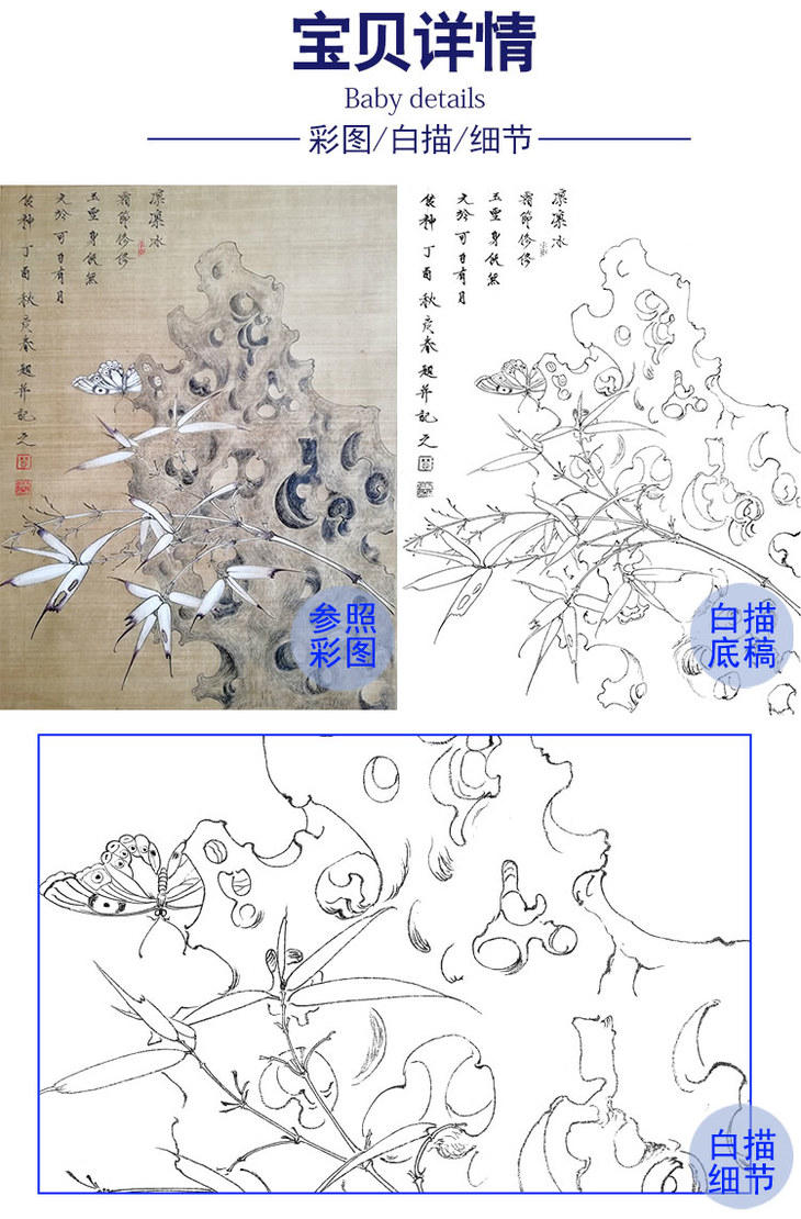 楚彦春复古风工笔花鸟白描底稿-竹子-斗方小品册页-CY30