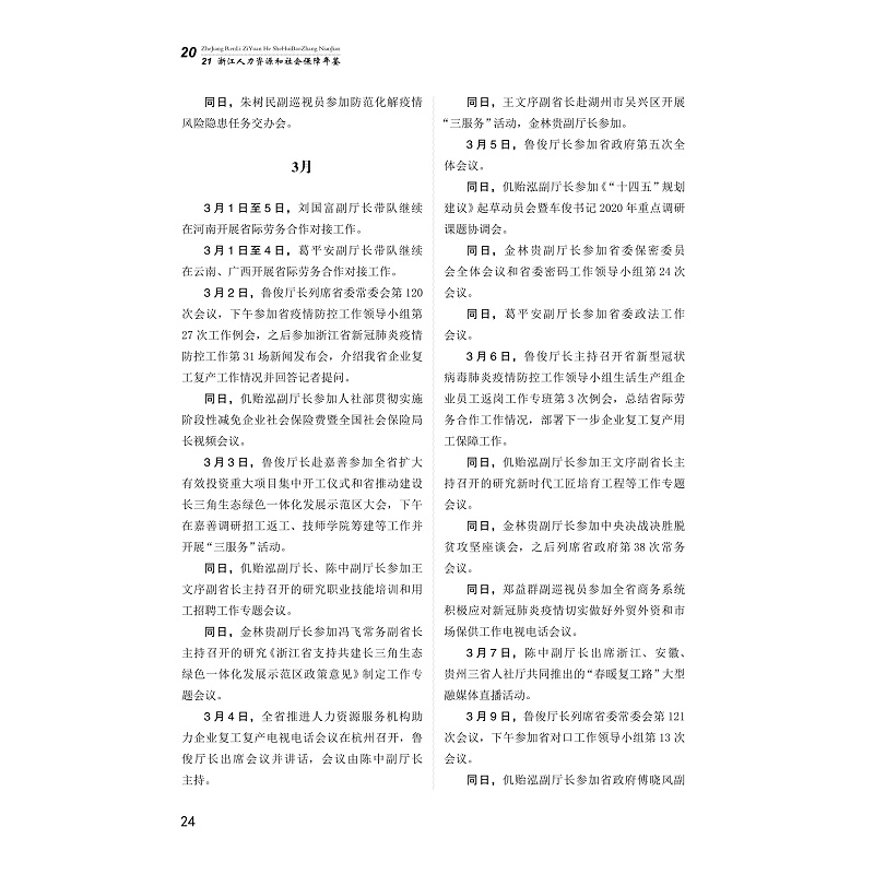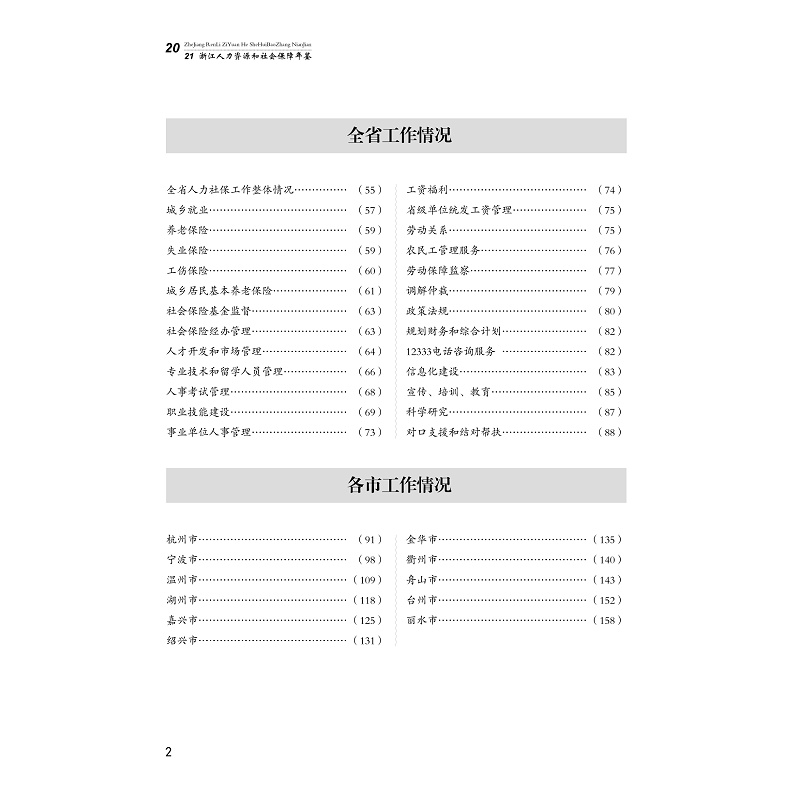 《浙江人力资源和社会保障2021》内容主要反映浙江省人力资源社会保障事业发展情况,详细记述了2020年度浙江省各市、地区人力资源社会保障工作的基本情况和主要成绩。本书收录了2020年浙江人力资源社会保障工作重要活动的部分图片资料、领导批示和讲话、规范性文件、统计资料、人力资源市场工资价位等,内容涵盖各个行业,记述全面而翔实。本书可作为有关部门领导决策参考依据,可供人力资源和社会保障部门工作人员参考查阅,可作为浙江省人力资源和社会保障工作史料存档。