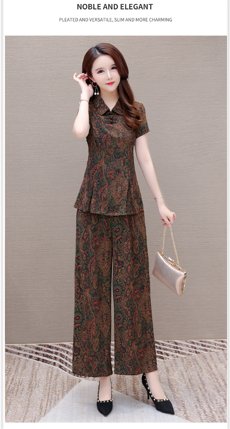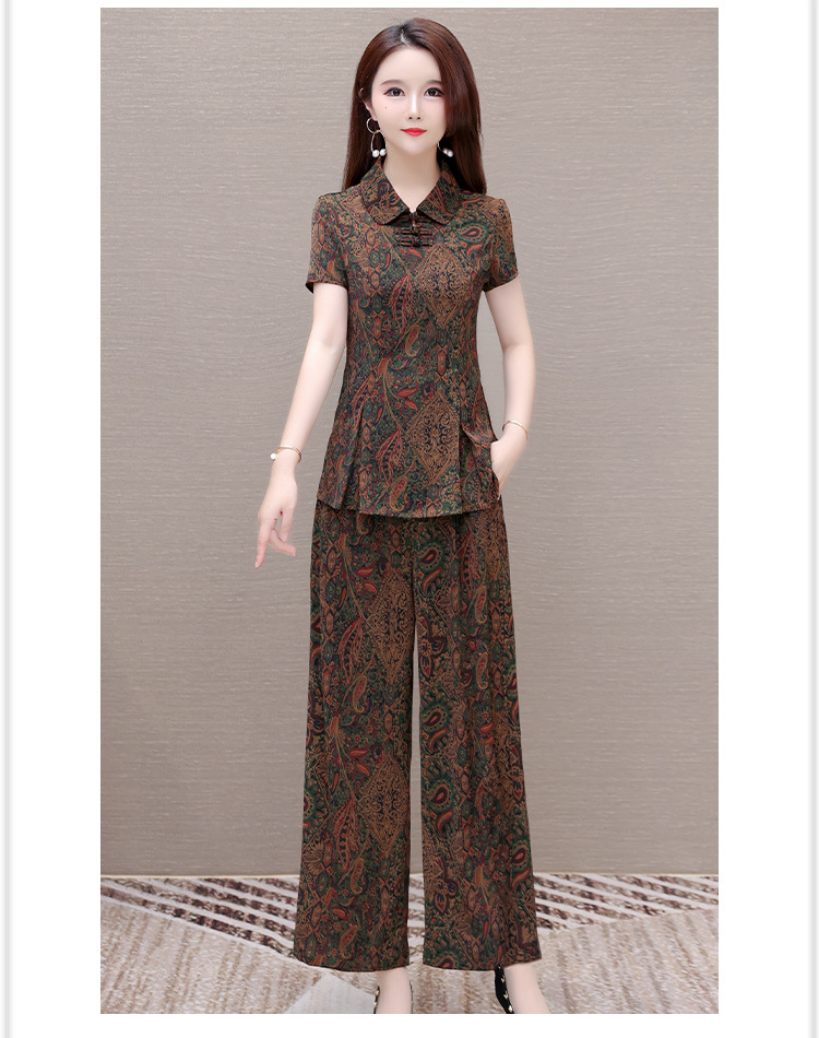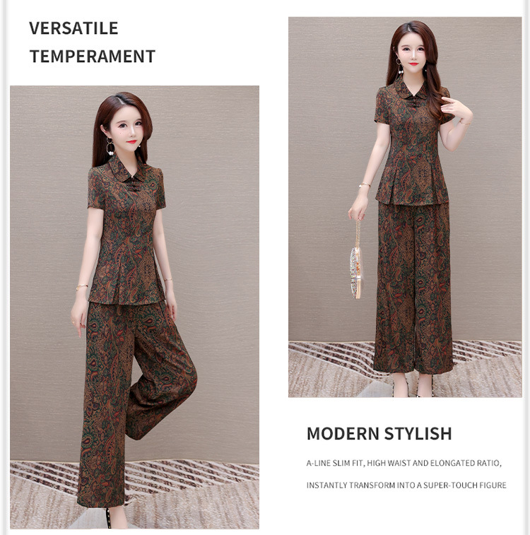 QYM 1814A21-Y时尚小衫阔腿裤中式复古印花套装