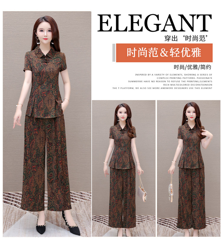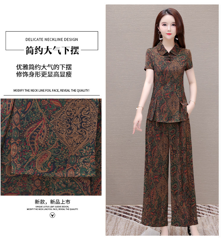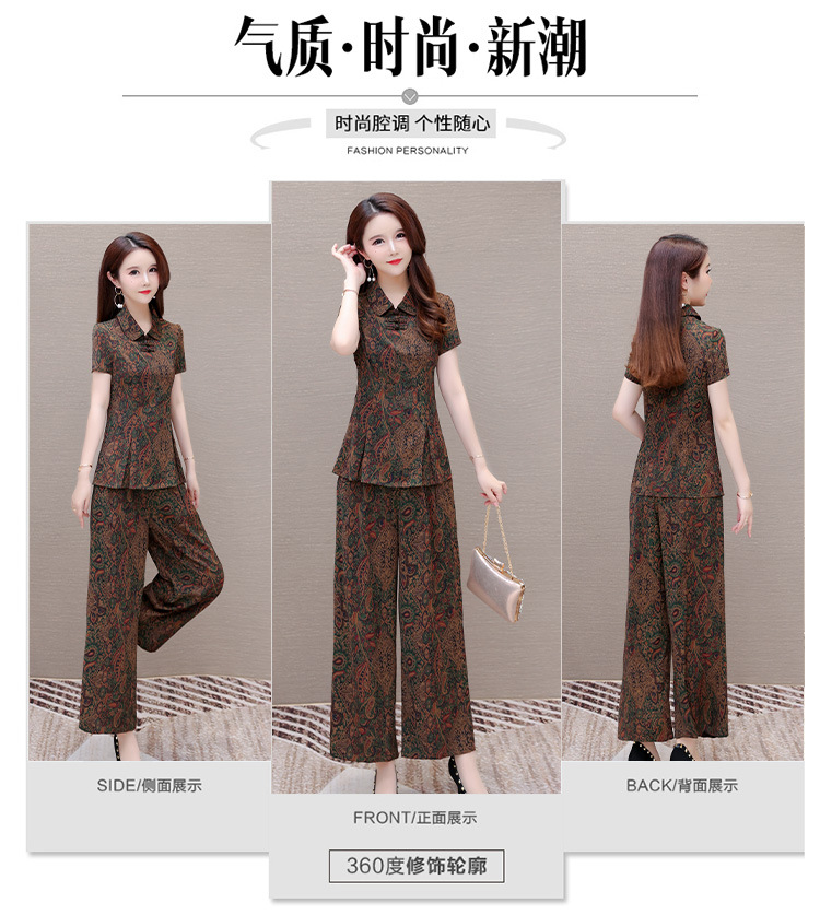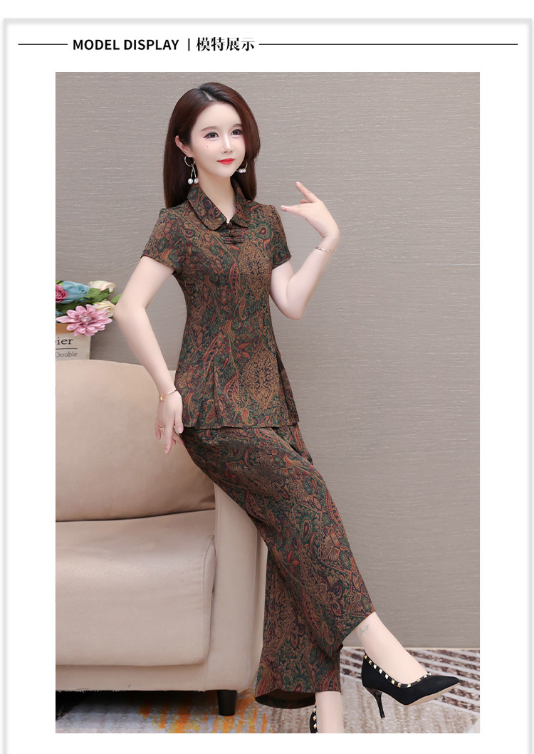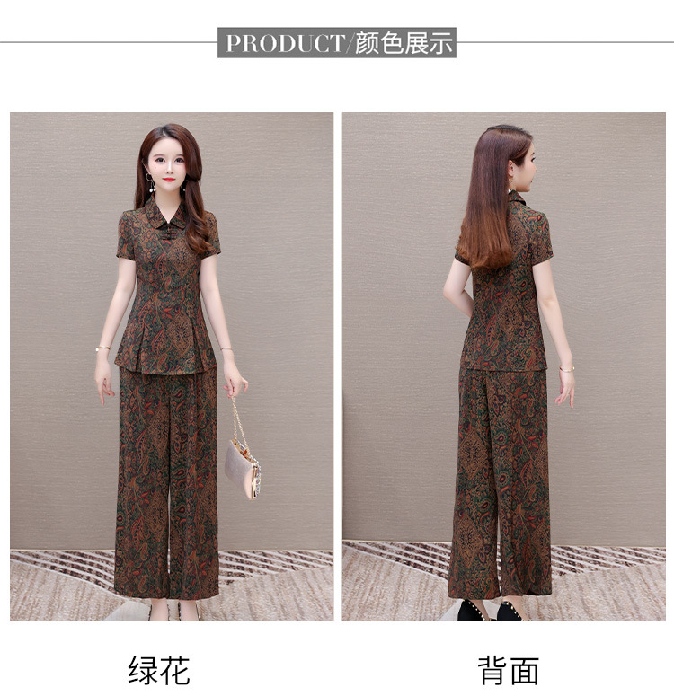 QYM 1814A21-Y时尚小衫阔腿裤中式复古印花套装 商品图2