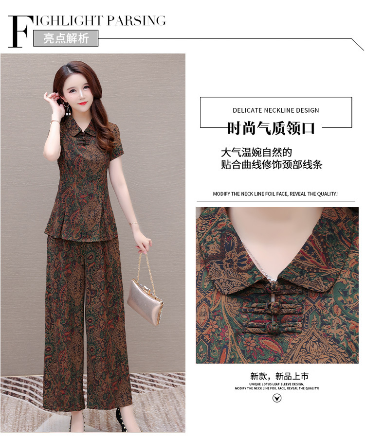 QYM 1814A21-Y时尚小衫阔腿裤中式复古印花套装 商品图0