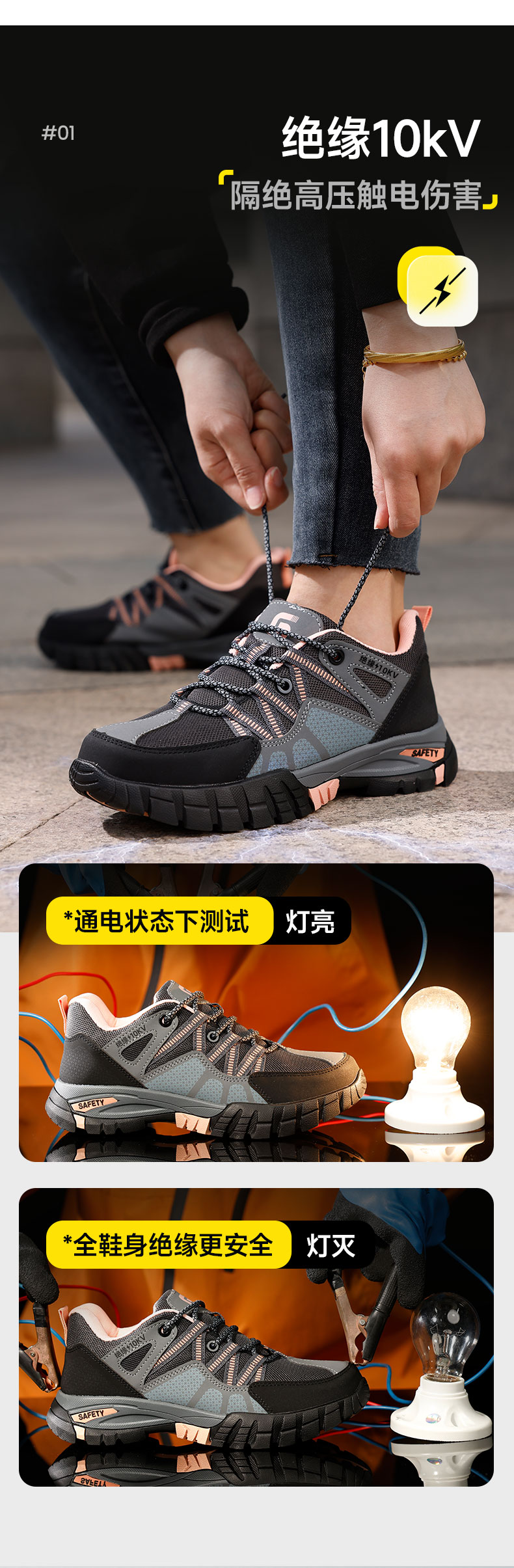 女士新款安全鞋四季款低帮防砸防刺绝缘10KV欧标玻纤头4.0凯夫拉耐磨