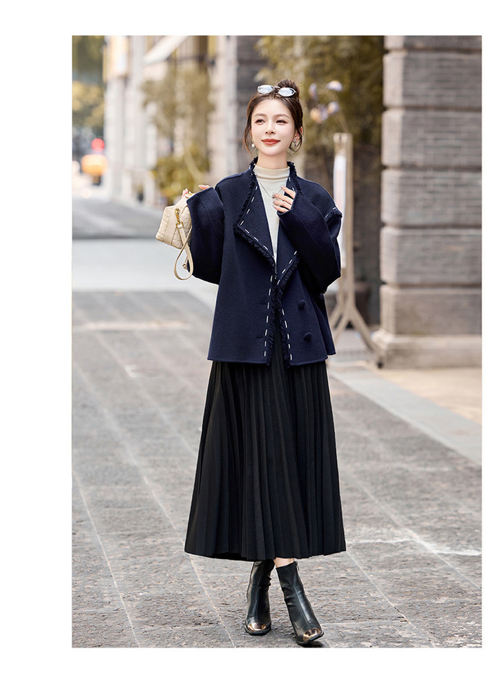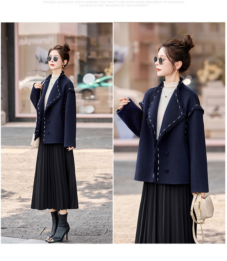 休闲风毛呢大衣韩版时尚宽松,大翻领短款双面羊毛外套HR-846