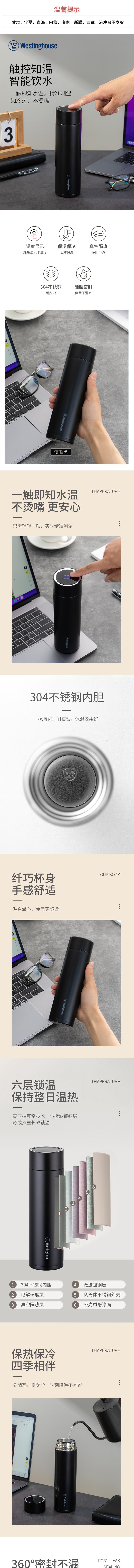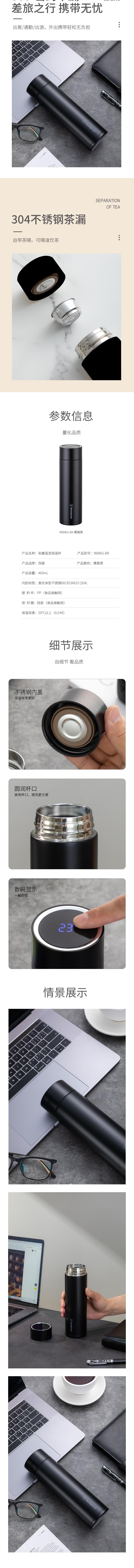 西屋 铂睿温显保温杯-儒雅黑450mL WB461-BK