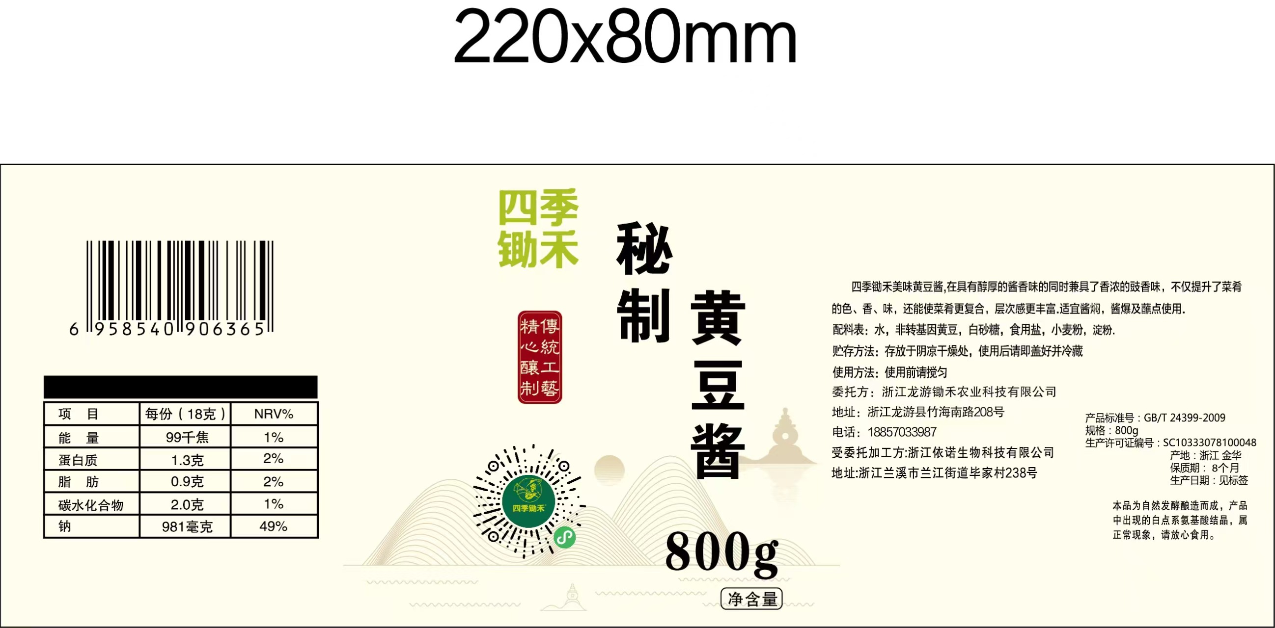 四季锄禾美味黄豆酱,在具有醇厚的酱香味的同时兼具了香浓的豉香味,不仅提升了菜肴的色、香、味,还能使菜着更复合,层次感更丰富.适宜酱焖,酱爆及蘸点使用.配料表:水,非转基因黄豆,白砂糖,食用盐,小麦粉,淀粉.