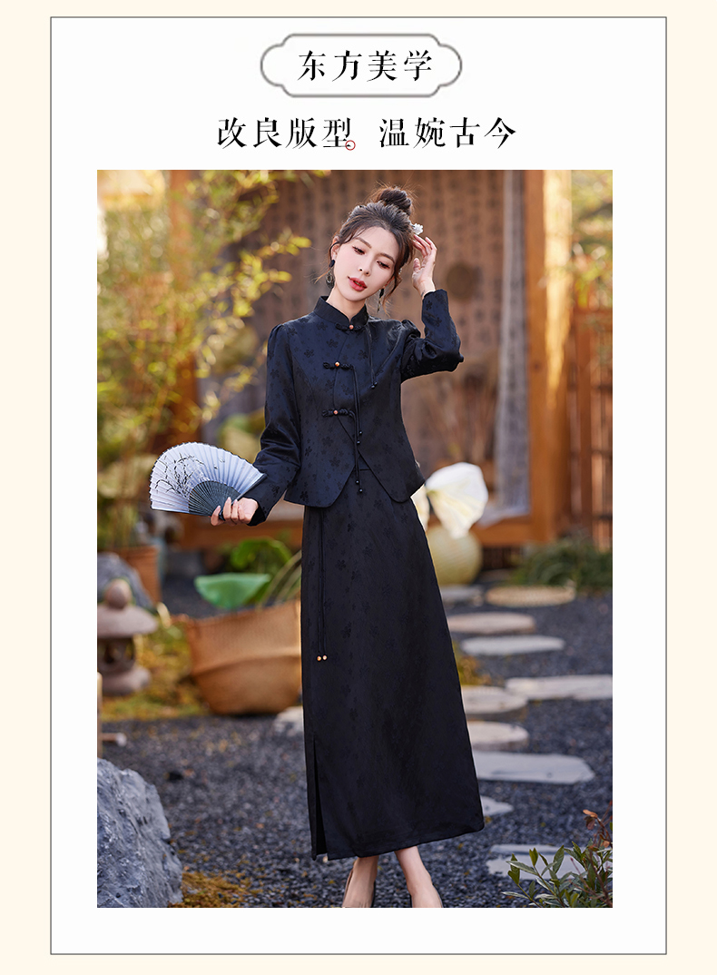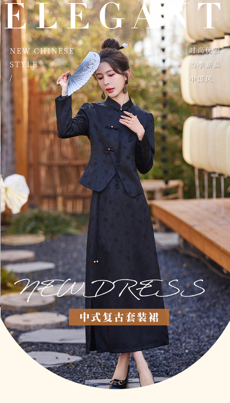复古新中式,高级优雅气质重磅提花两件套HR-QMC6181