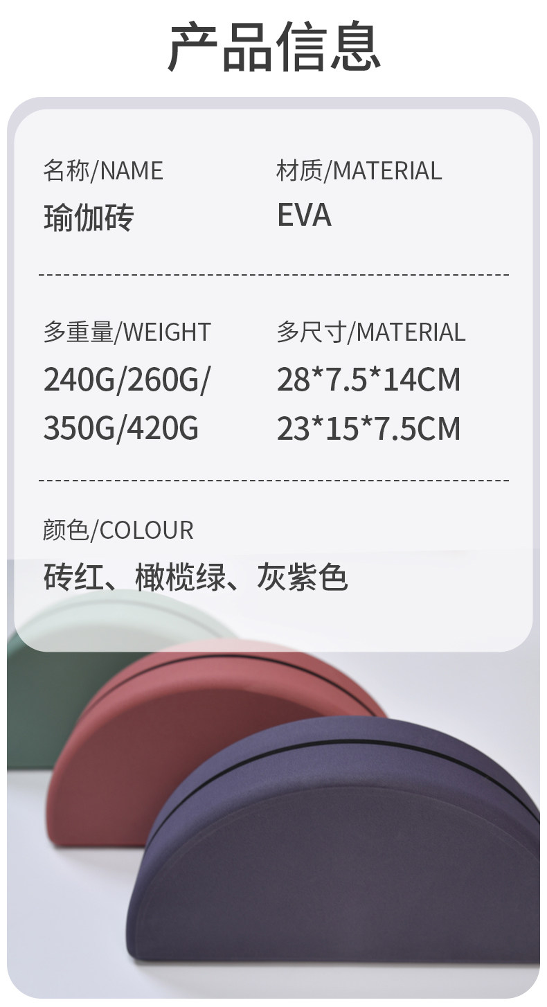 【昊达源选】瑜伽砖半圆砖月牙砖坡形砖EVA加密瑜伽舞蹈形体砖可做logo