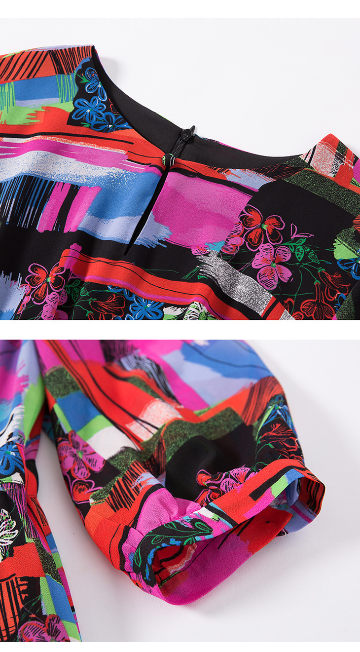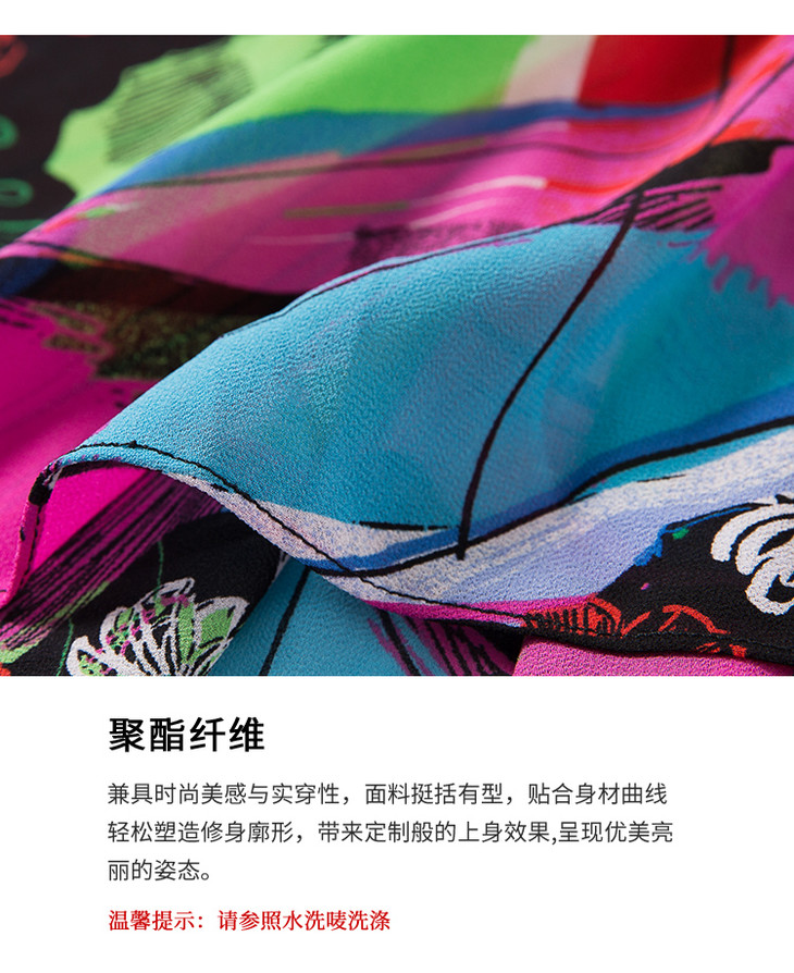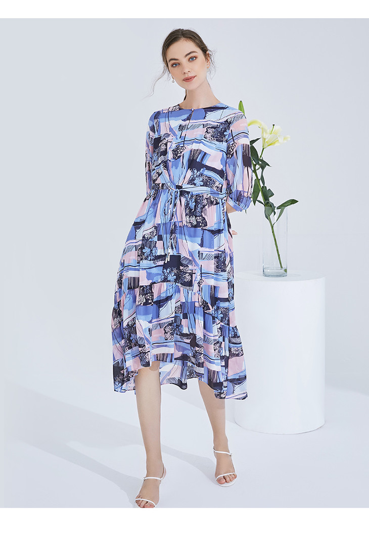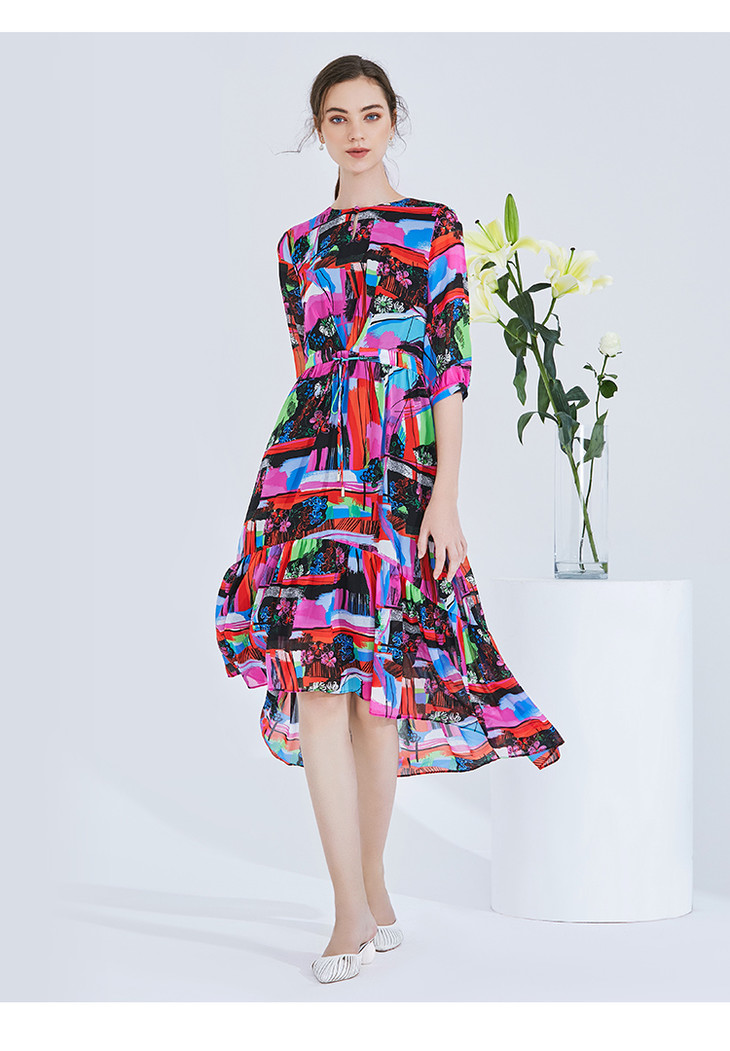 EITIE爱特爱女装夏季新款五分袖优雅不规则印花连衣裙中长款5907636
