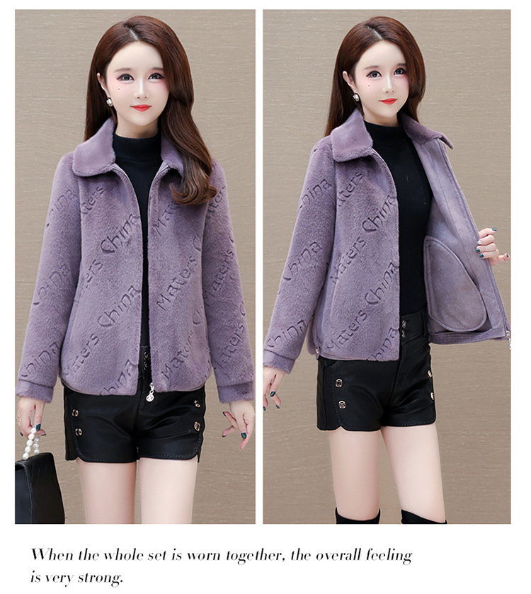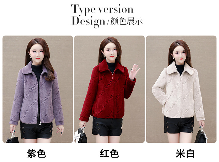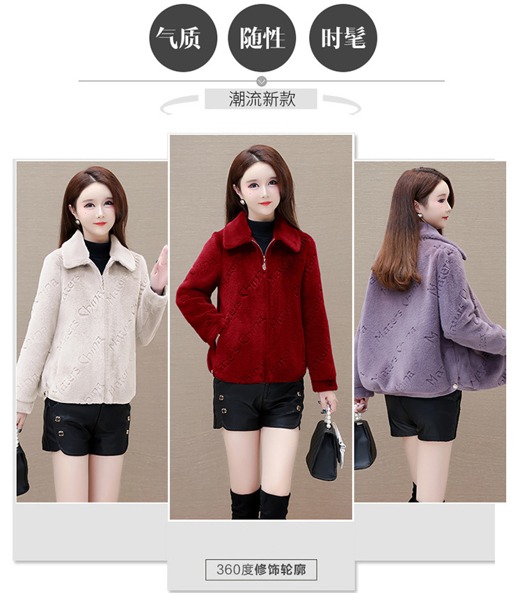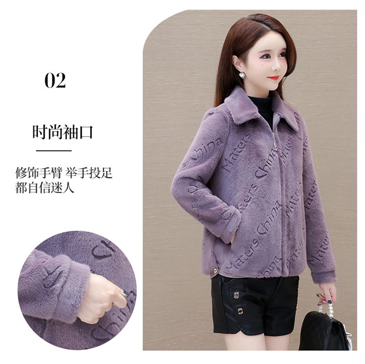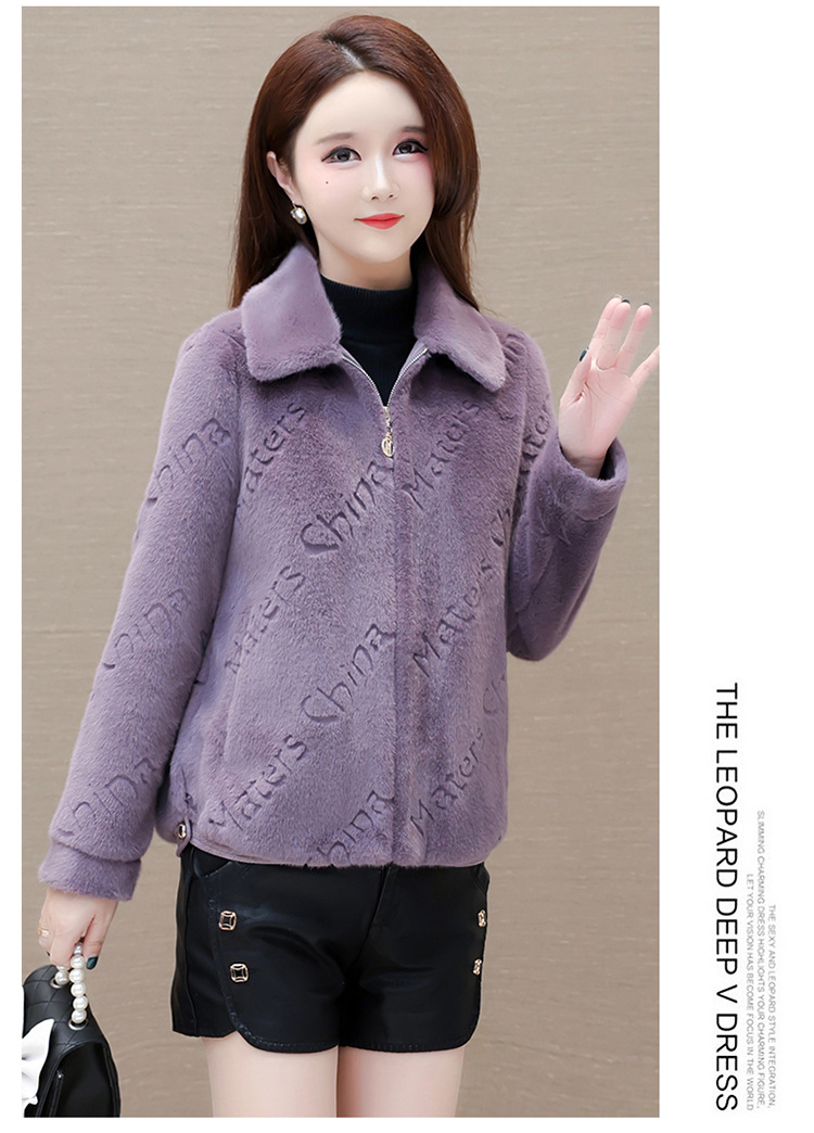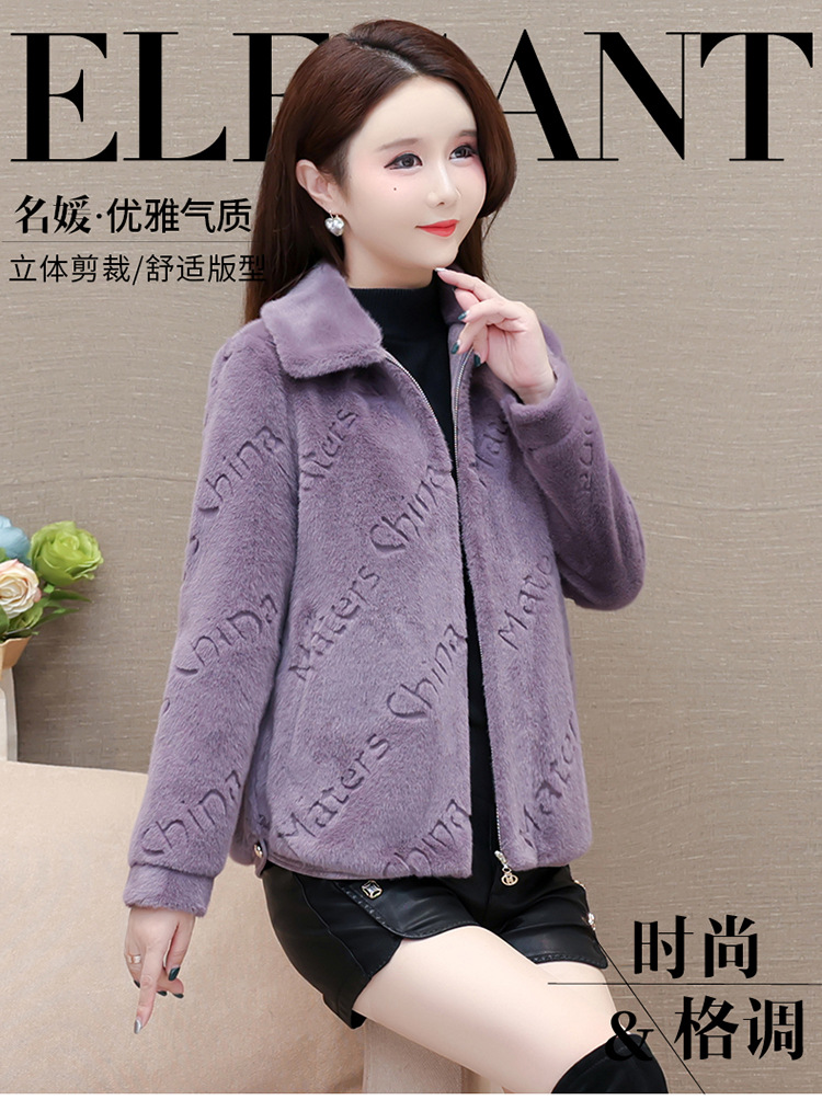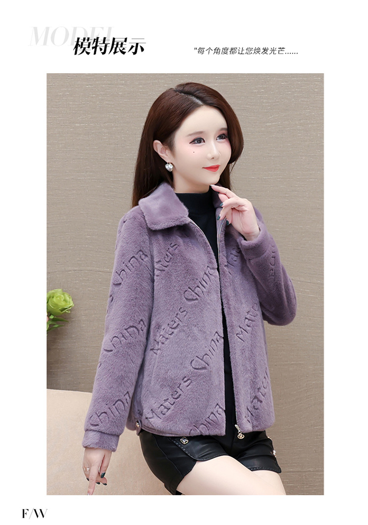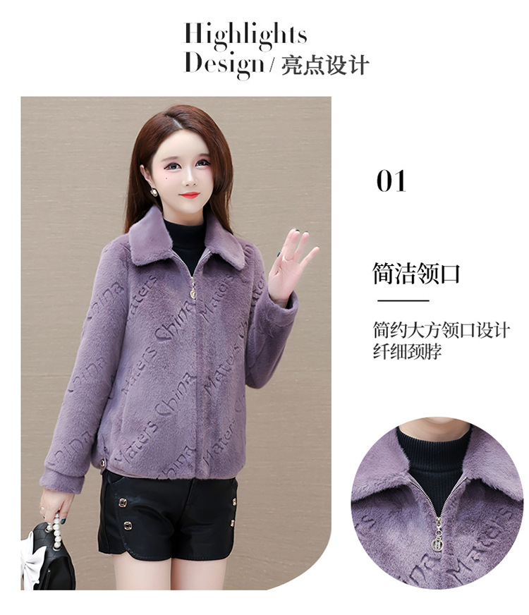 小个子洋气仿貂绒外套,翻领加厚妈妈装毛呢大衣QYM-XQD-65D16-L