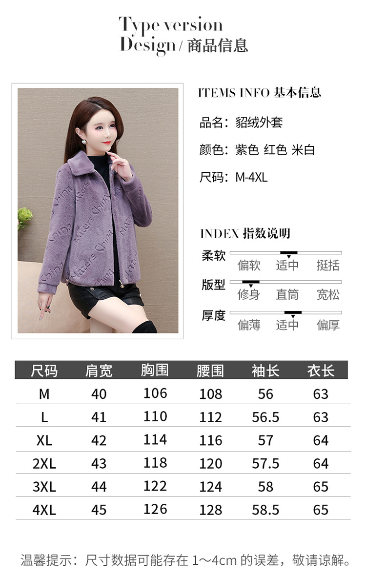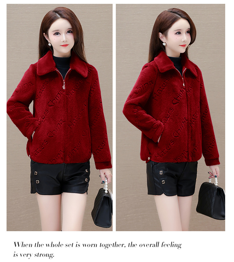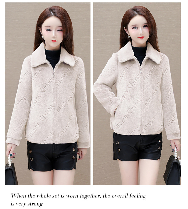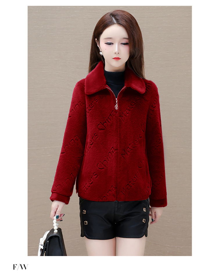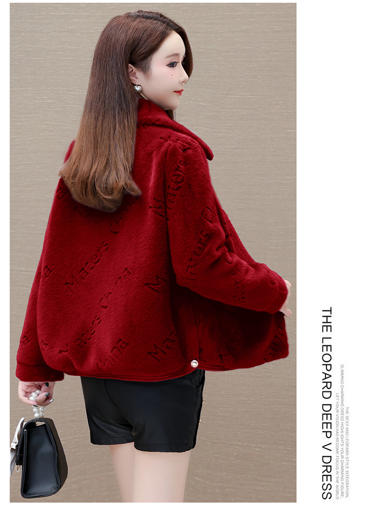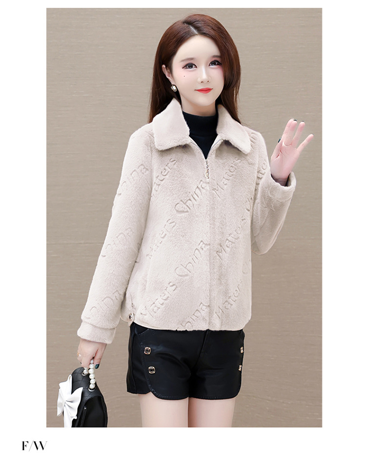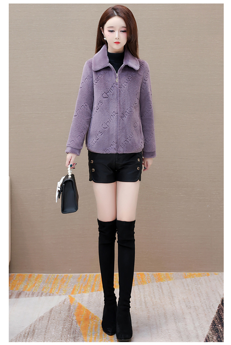 小个子洋气仿貂绒外套,翻领加厚妈妈装毛呢大衣QYM-XQD-65D16-L