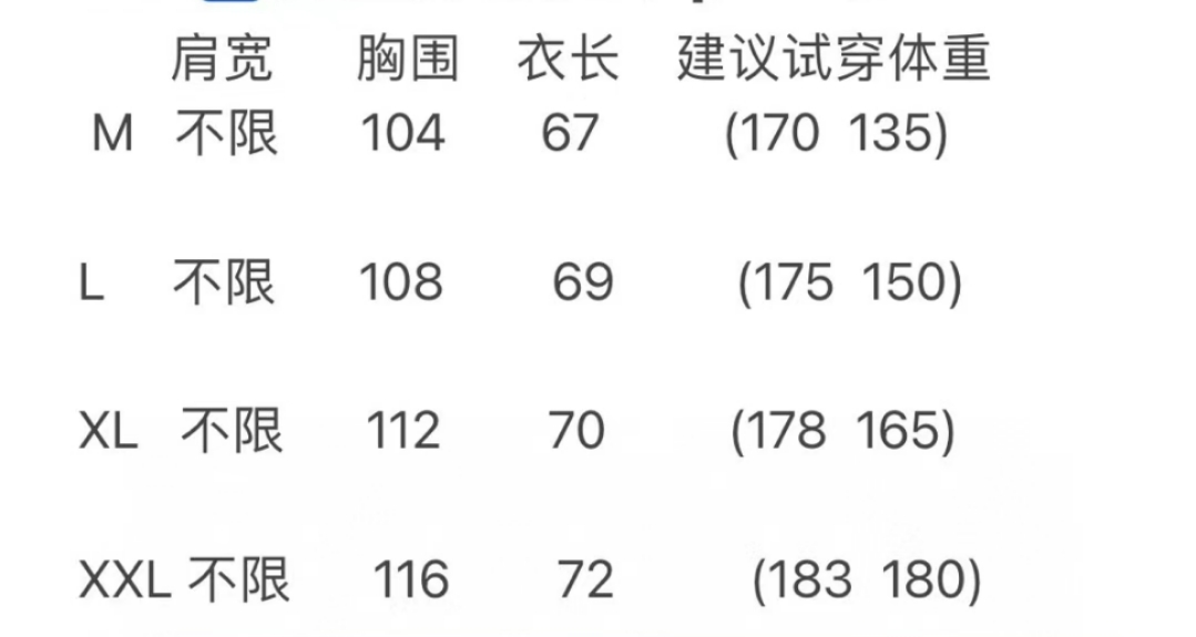 尺码:M-XXL
