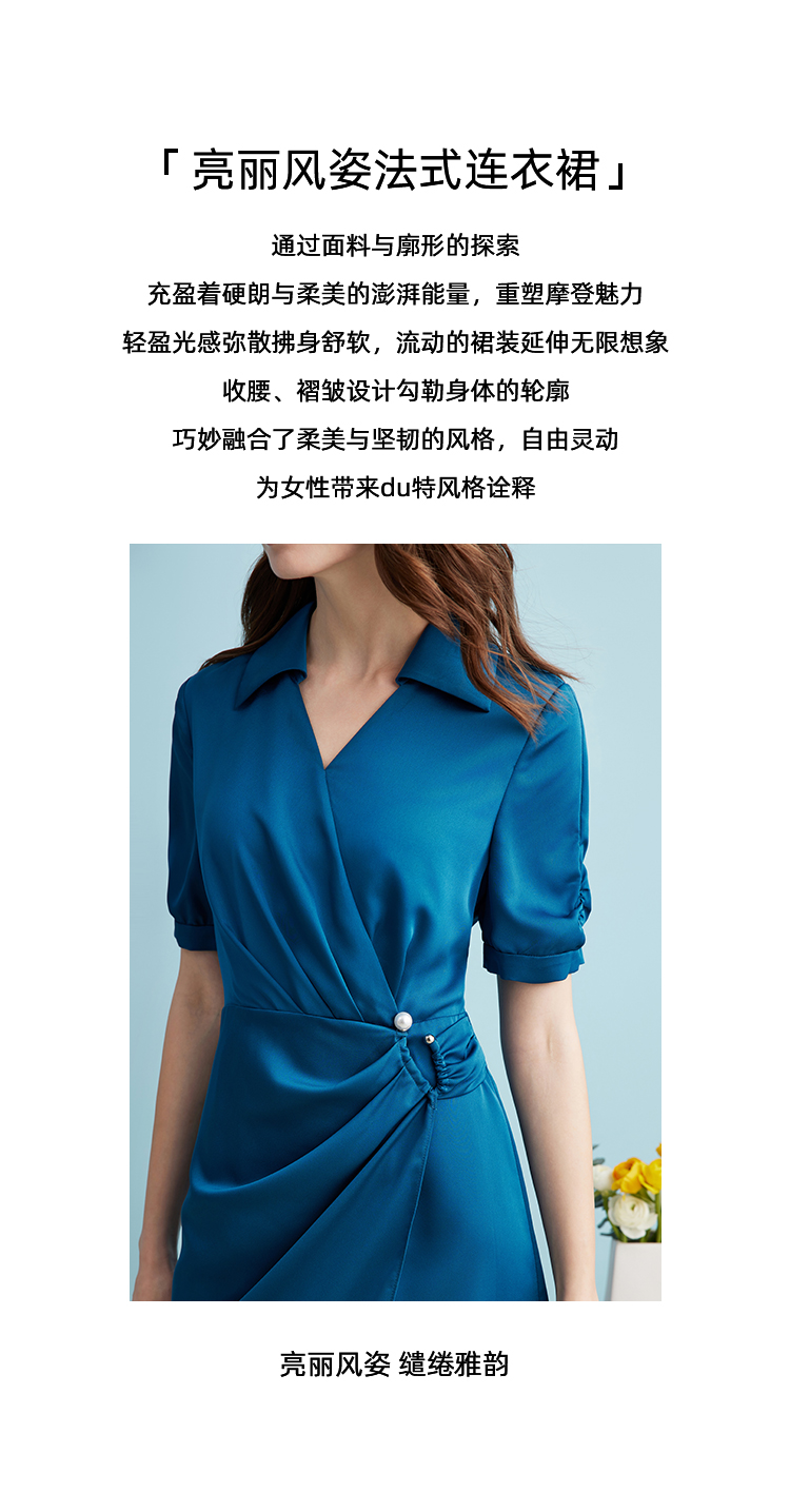 EITIE爱特爱夏季新款通勤OL压褶收腰显瘦气质连衣裙B2407320