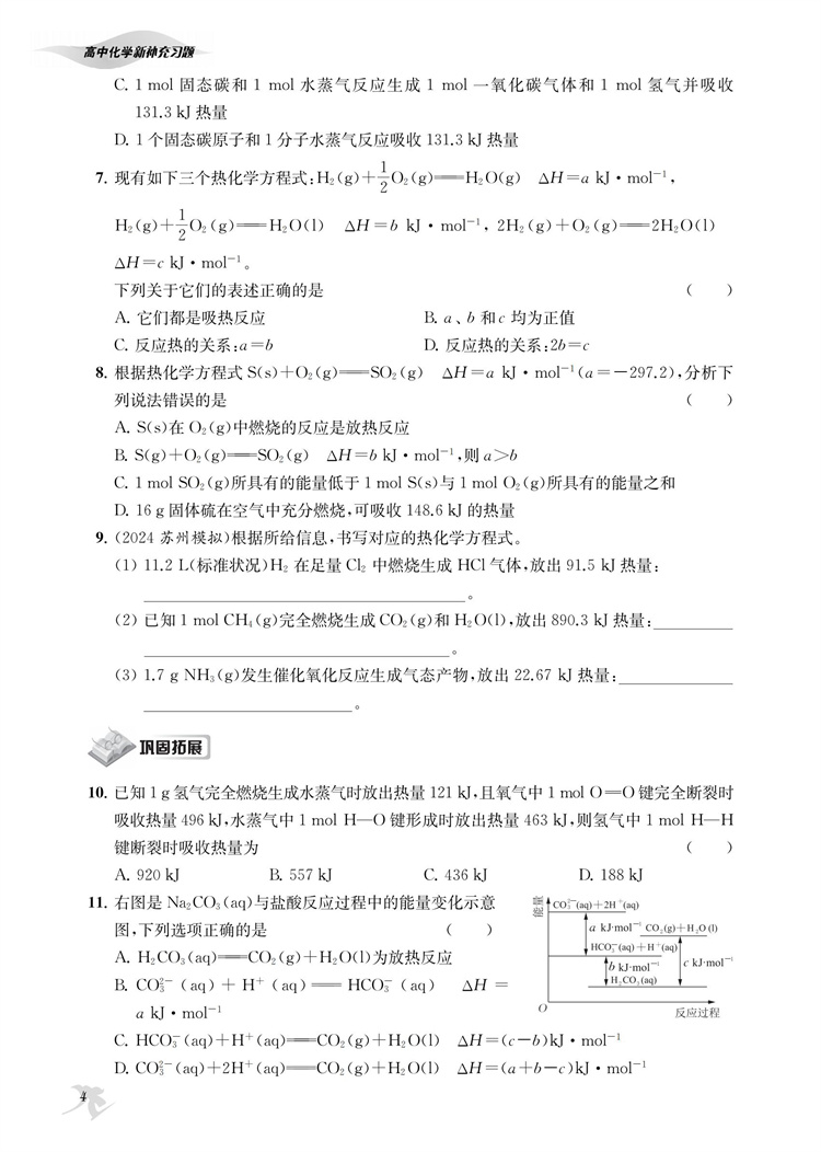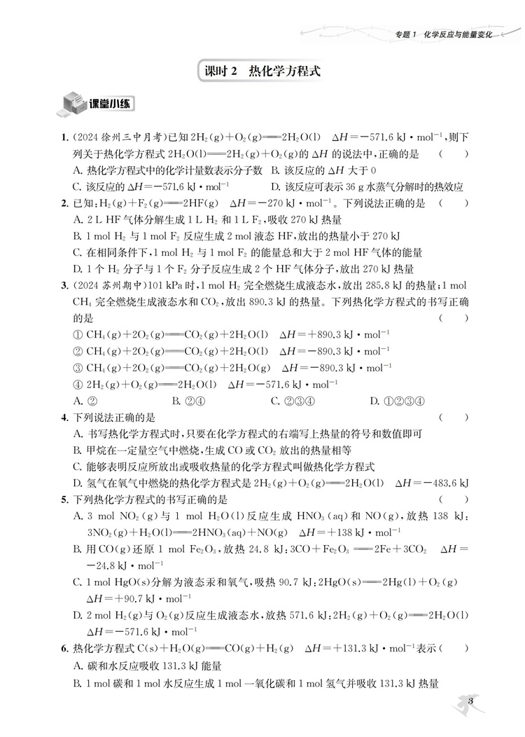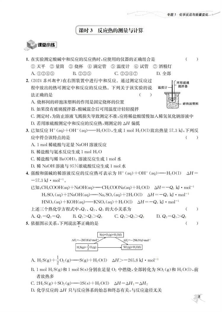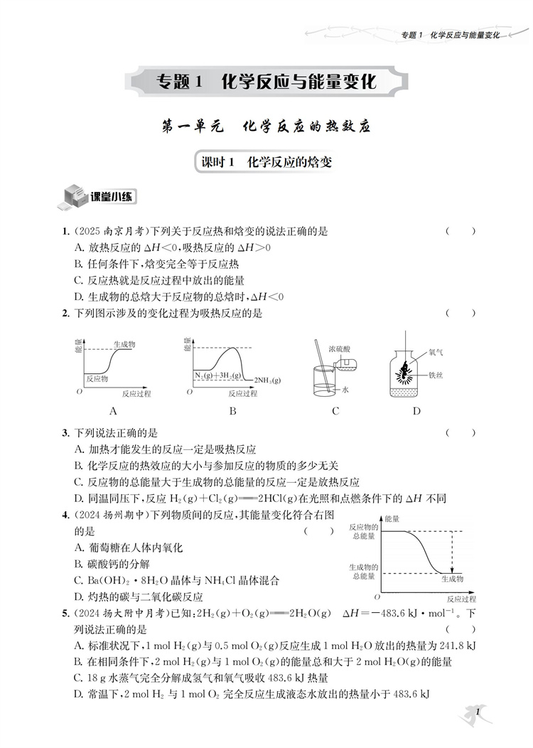 2025年 高中化学新补充习题 苏教版 选择性必修1化学反应原理 含参考答案 核心素养版 必修一 江苏凤凰教育出版社