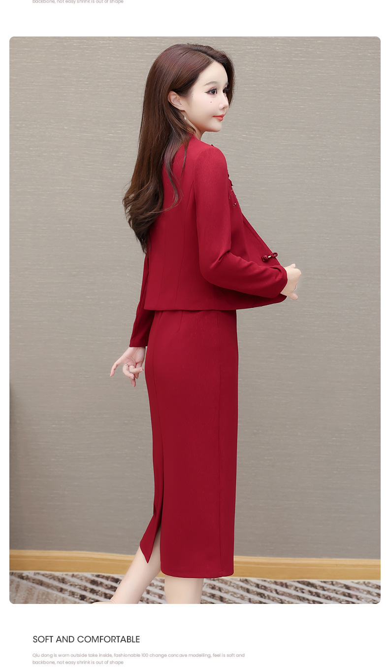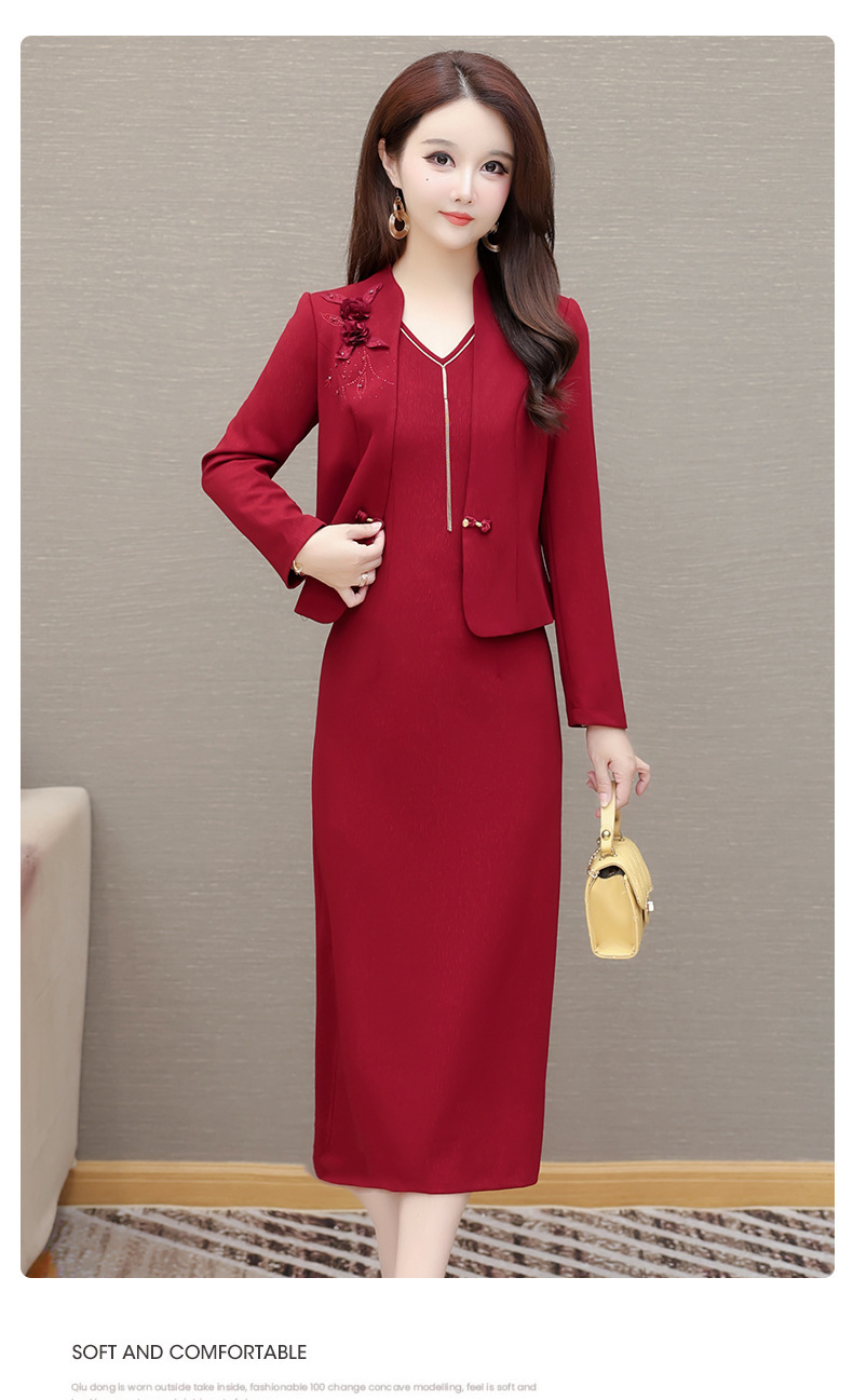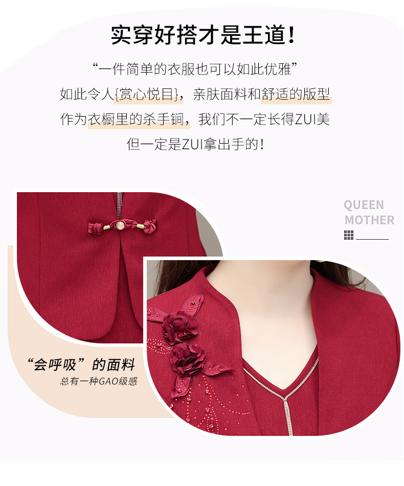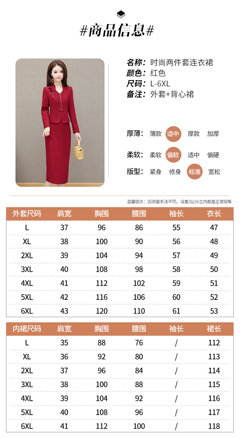 QYM 5225JLNB011大码红色两件套连衣裙洋气时尚修身过膝裙
