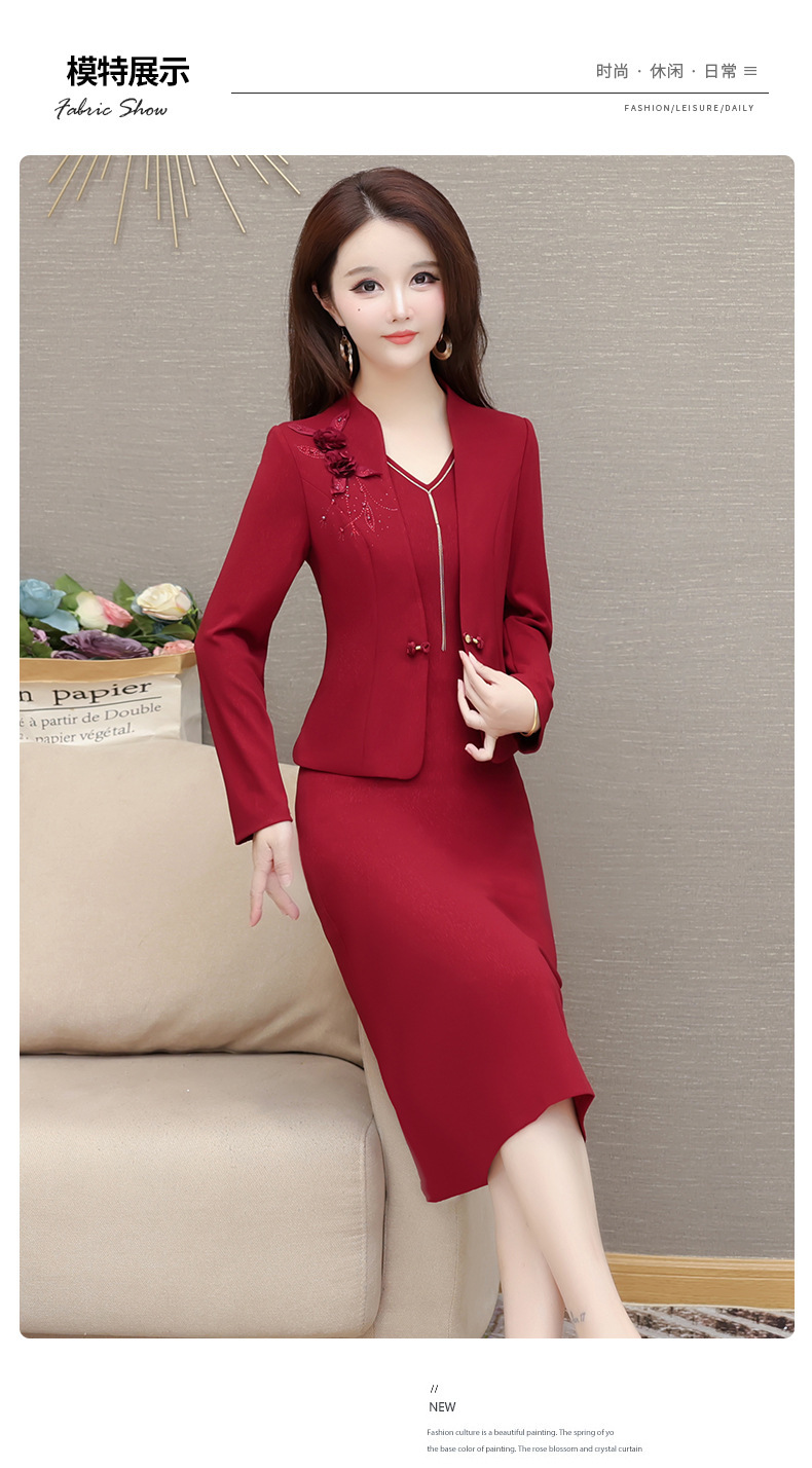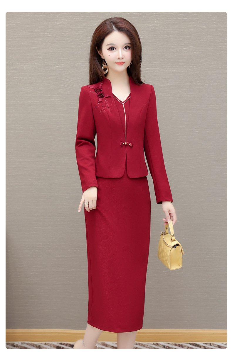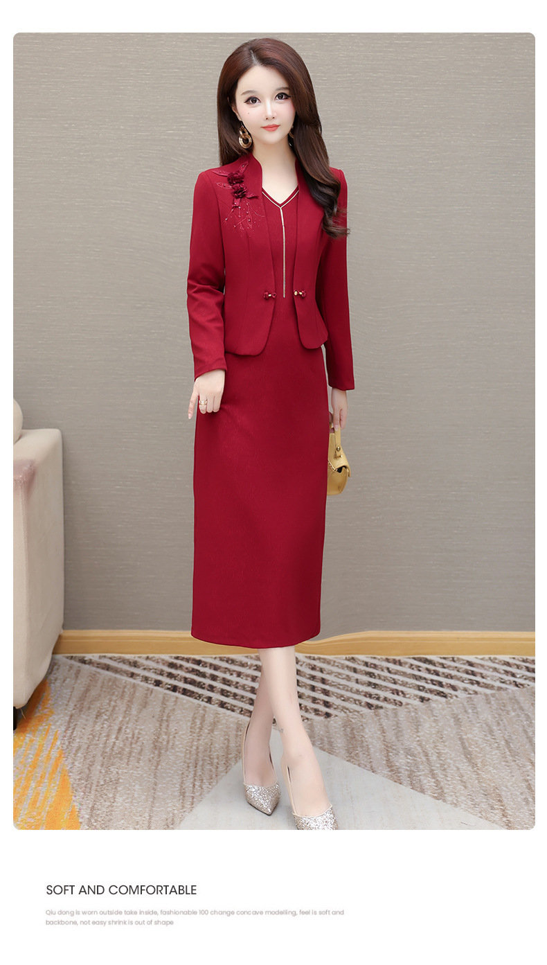 QYM 5225JLNB011大码红色两件套连衣裙洋气时尚修身过膝裙